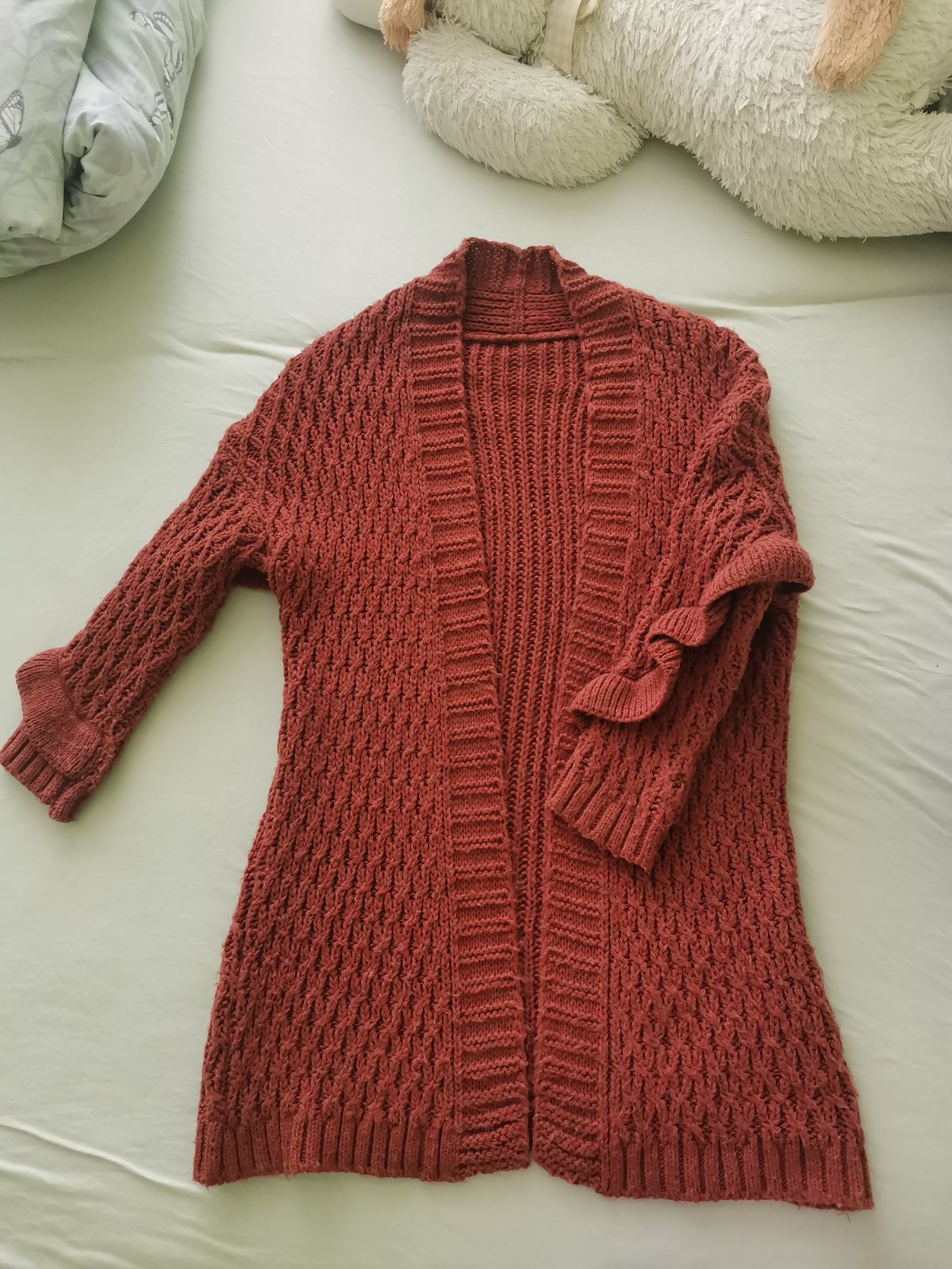 Predám kardigán UNI veľkosť v top stave, možno raz oblečený. Dlž. 68cm Šír.cez prsia. 51cm Dlž.ruk.od ramena. 57cm