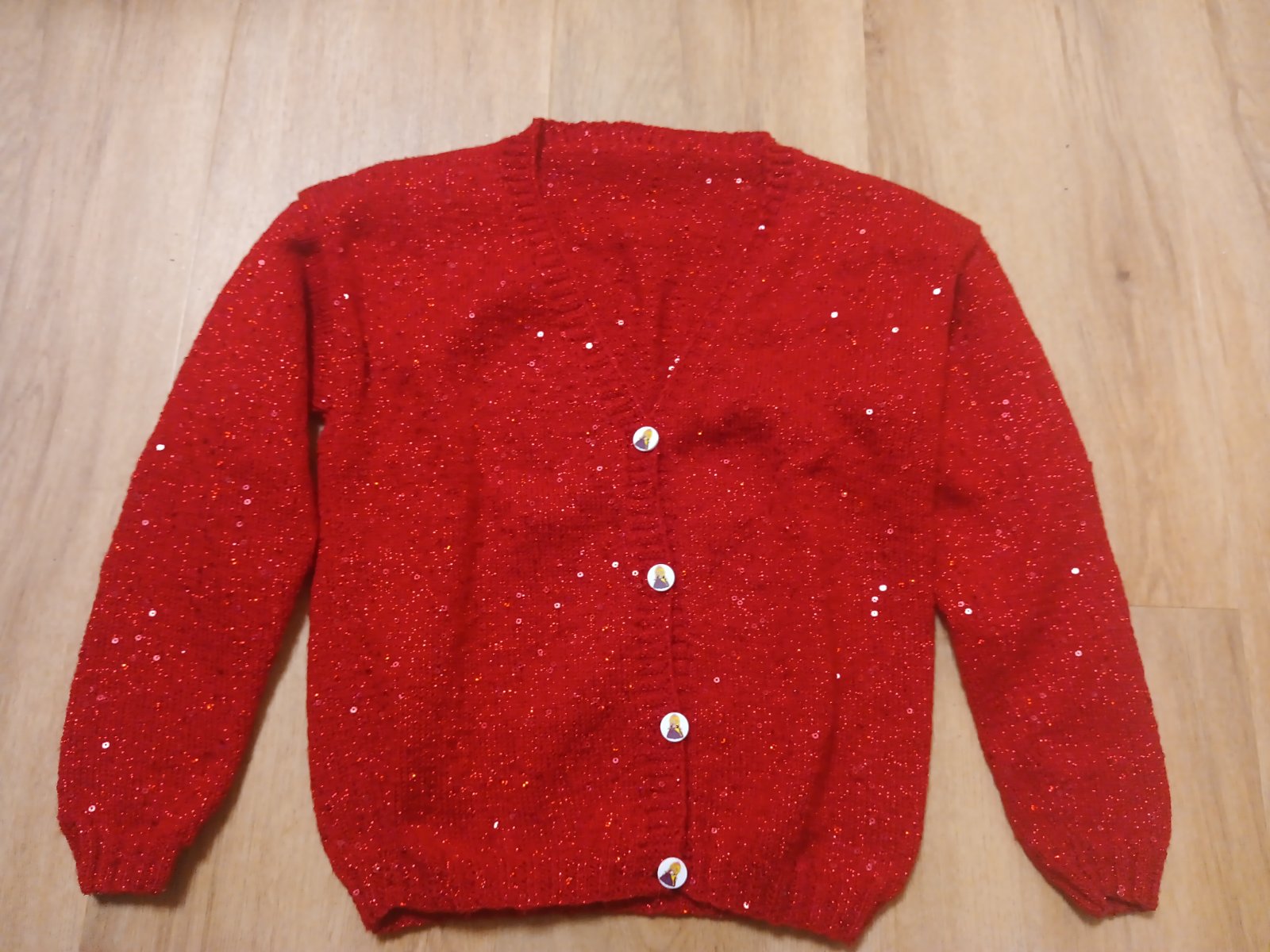 Predám nádherný svetrík, plietla babka. Veľkosť odhadom preto pridám rozmery: dĺžka 46 cm, šířka 38 cm, rukáv od ramena 39 cm.