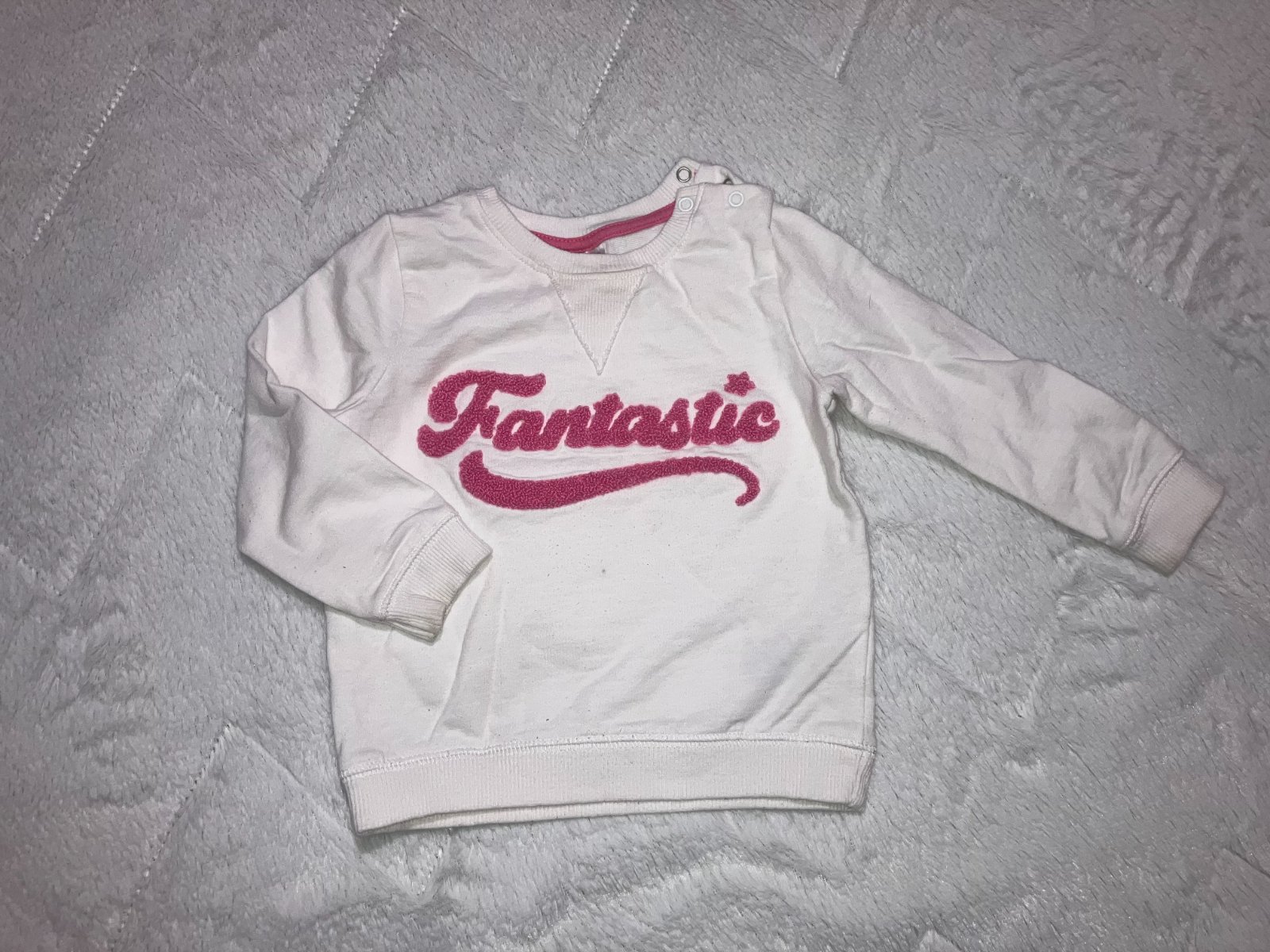 biela mikina s nápisom