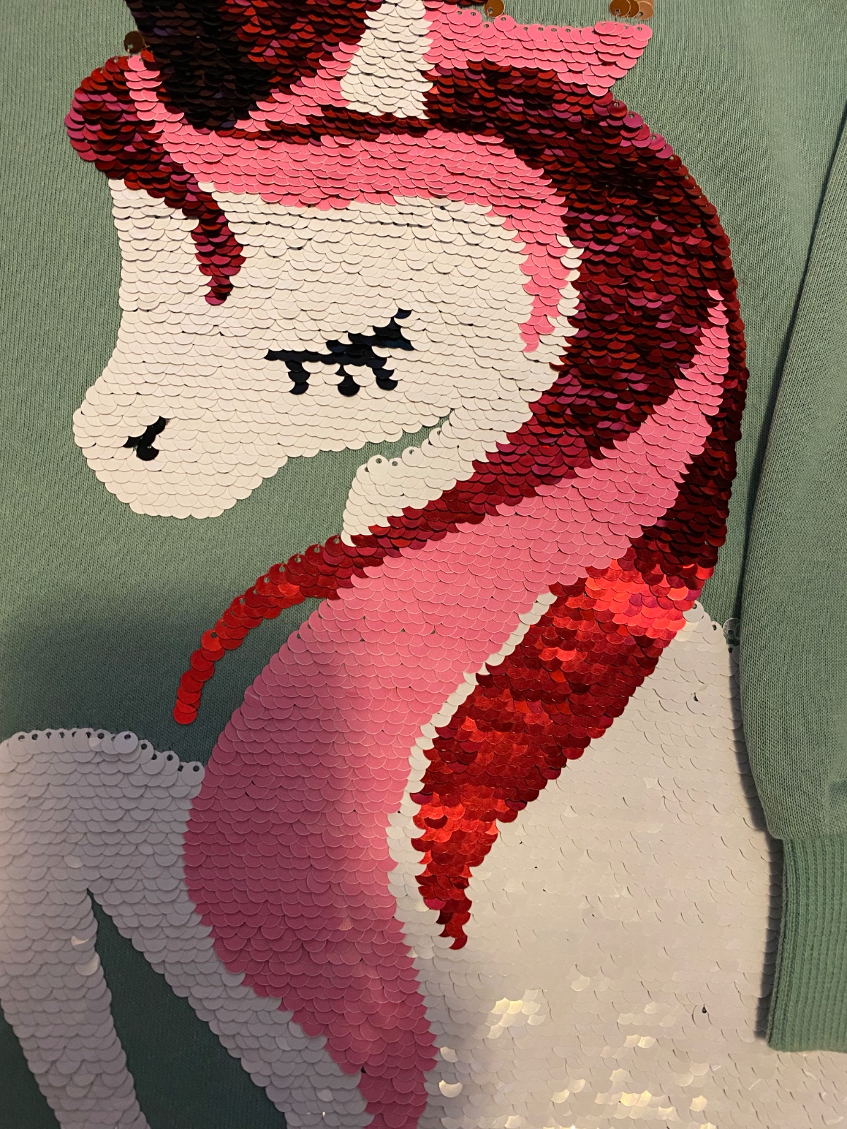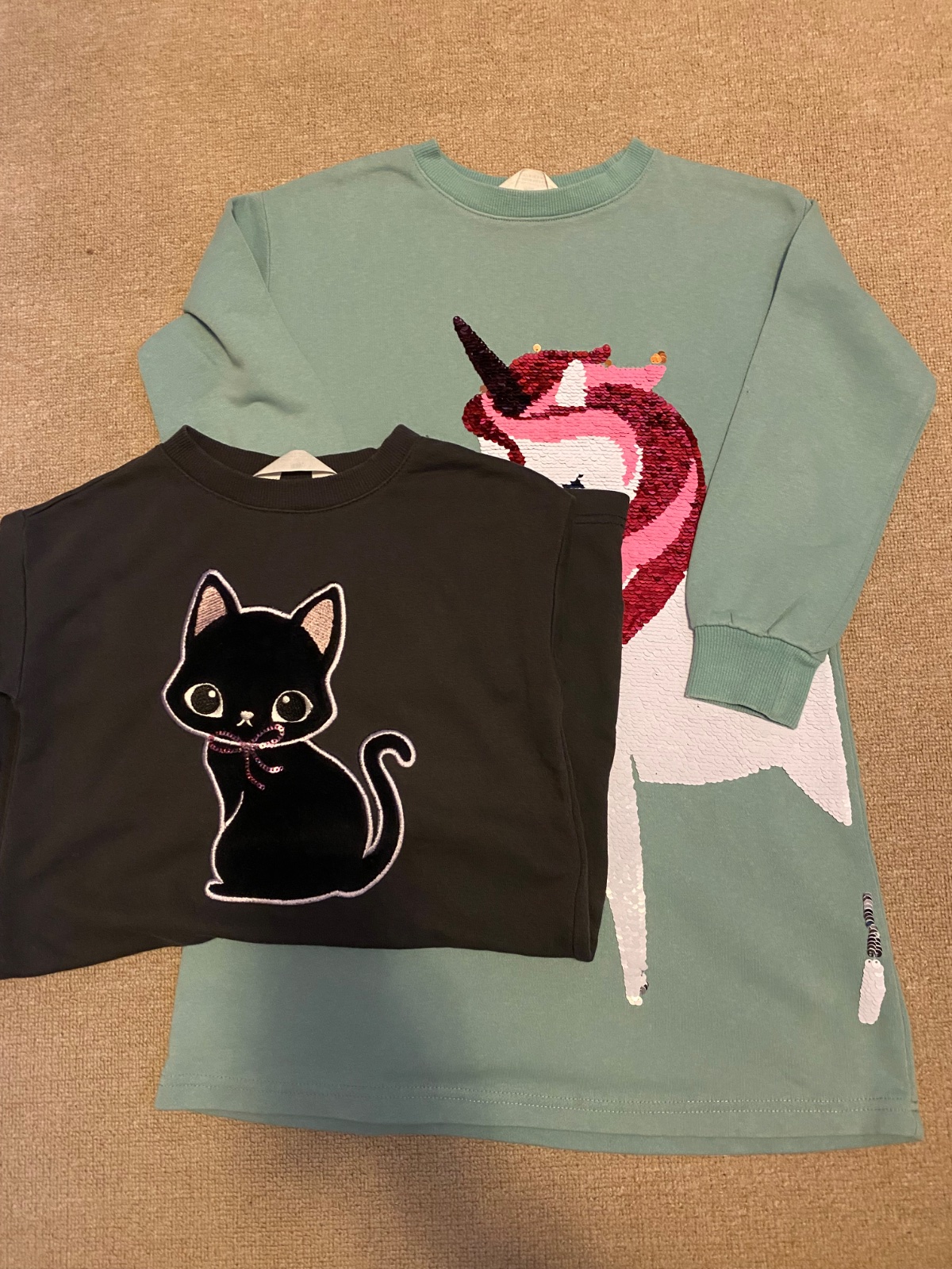 Huňatá teplučká mikina s jednorožcom (premieňacie flitre). Je trochu predĺžená pod zadok. Na patentoch jemné žmolky, inak bez fľakov, či dier.