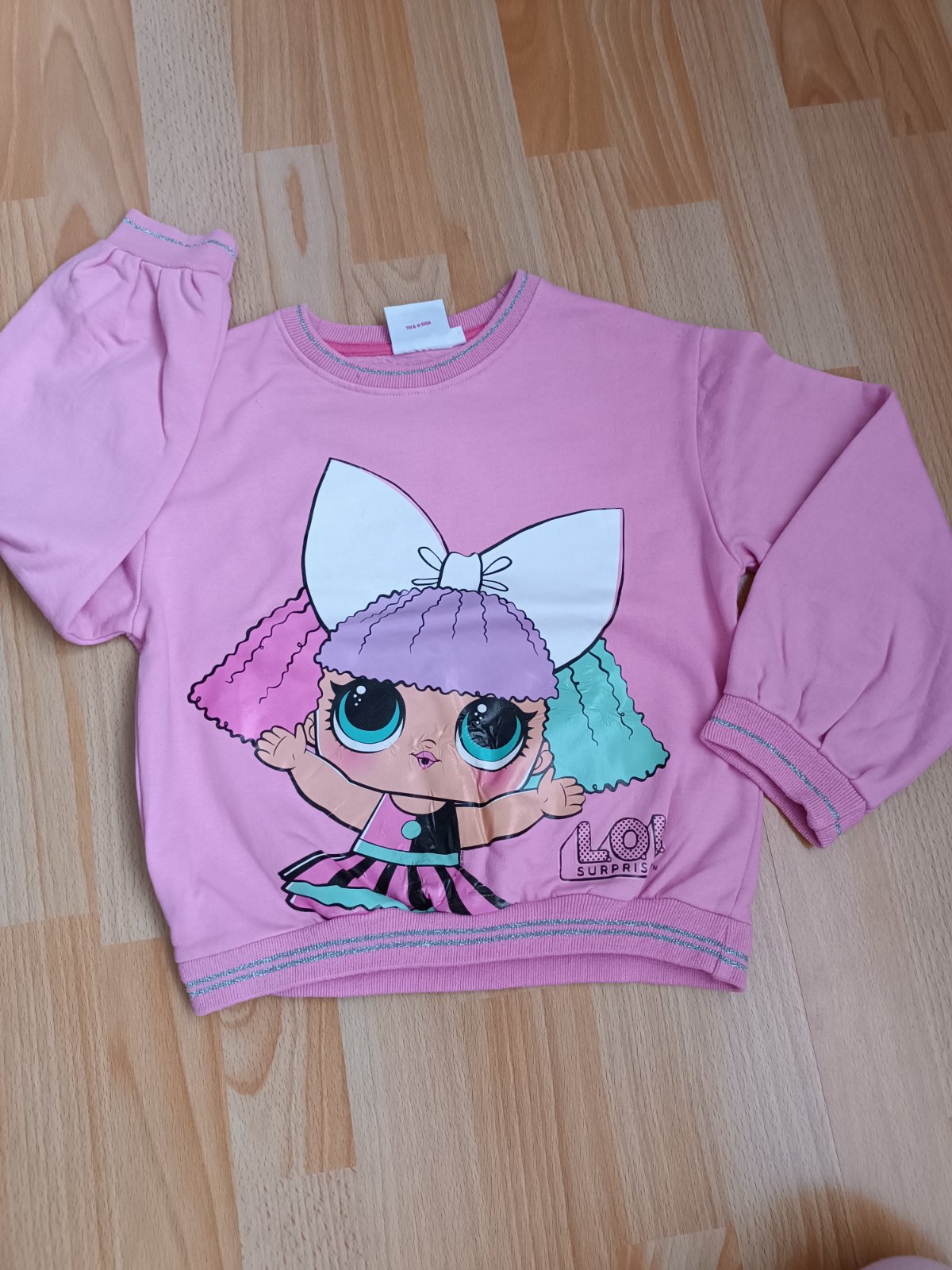 Bez poškodení, pár krát použitá. Aplikácia nie je popukana ale po praní sa trochu zošúverila -viď foto, nič hrozné.