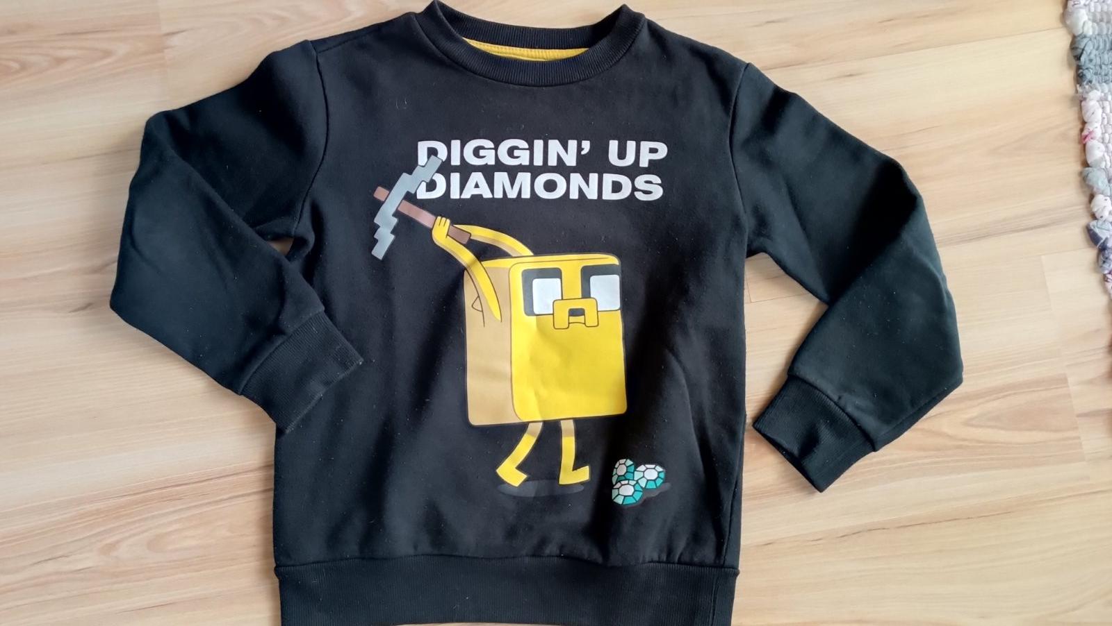 Krásna mikina pre Minecrafťákov, do školy paráda, má minižmolky, nápis a obrázok top - žiadne prasklinky