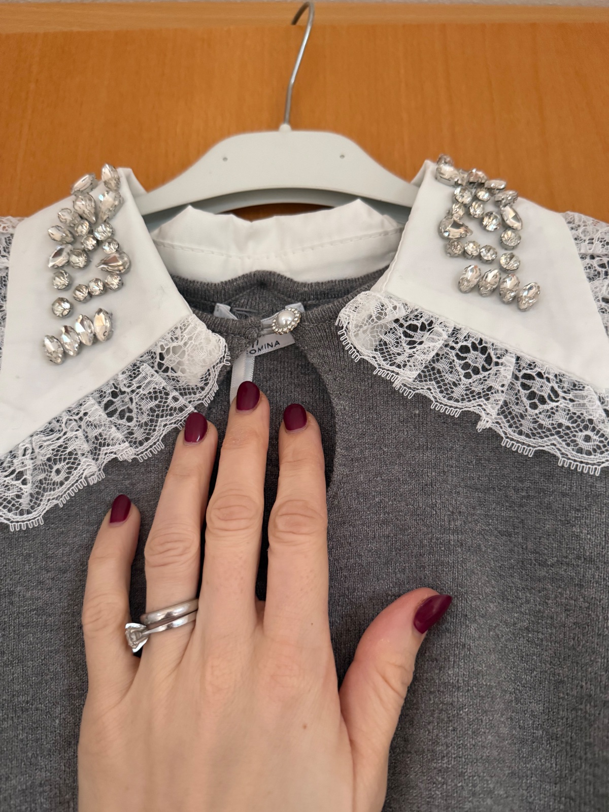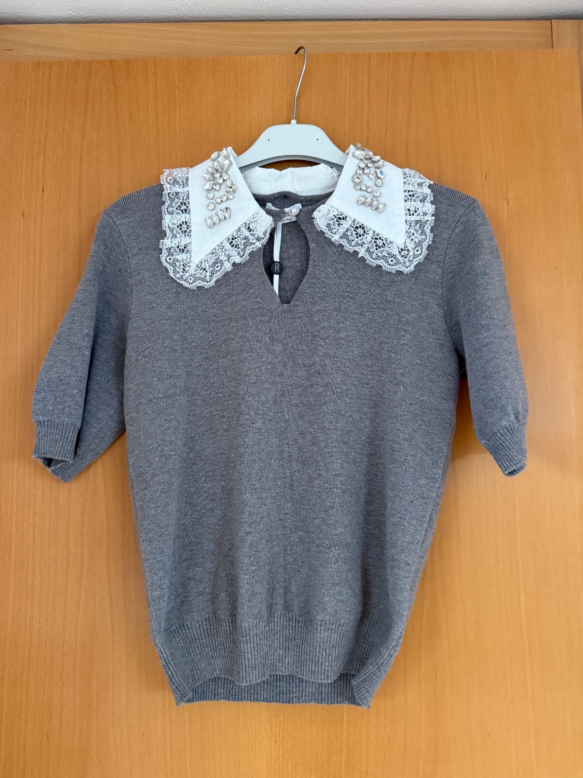 Svetrík Fracomina s krátkym rukávom a odnímateľným limcom s kamienkami. Úžasný príjemný materiál. Veľkosť Xs. Nový s visačkou. Pôvodná cena bola 145€.