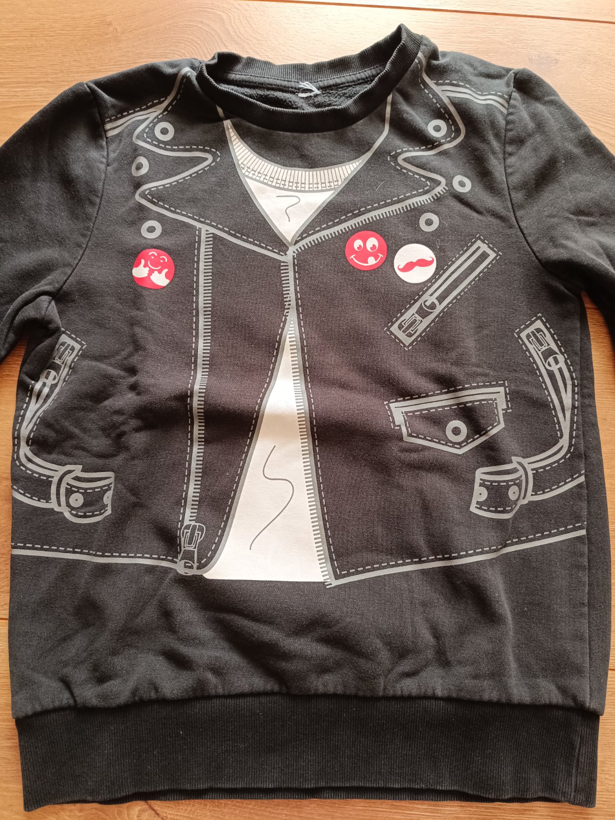 Tricko je vyrobene z balvnenej hrubsej latky v ciernej farbe s obrazkom s motivom bundy.