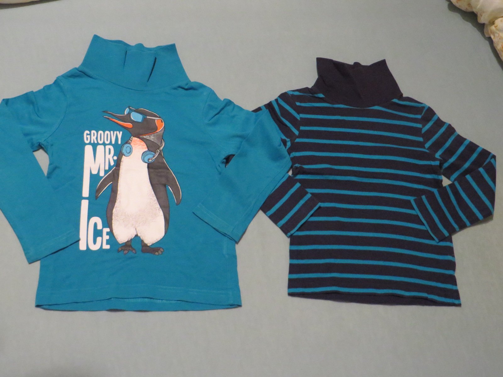 Predám detské roláky, 2 ks, oba sú veľkosť 110. Jednofarebný tyrkysový s tučniakom je za 3,0€, aplikácia je neporušená, je vhodný aj do škôlky/školy. Druhý pásikavý je tiež vo výbornom stave, cena je 2,80€. Pri odbere spolu cena 5,50€.