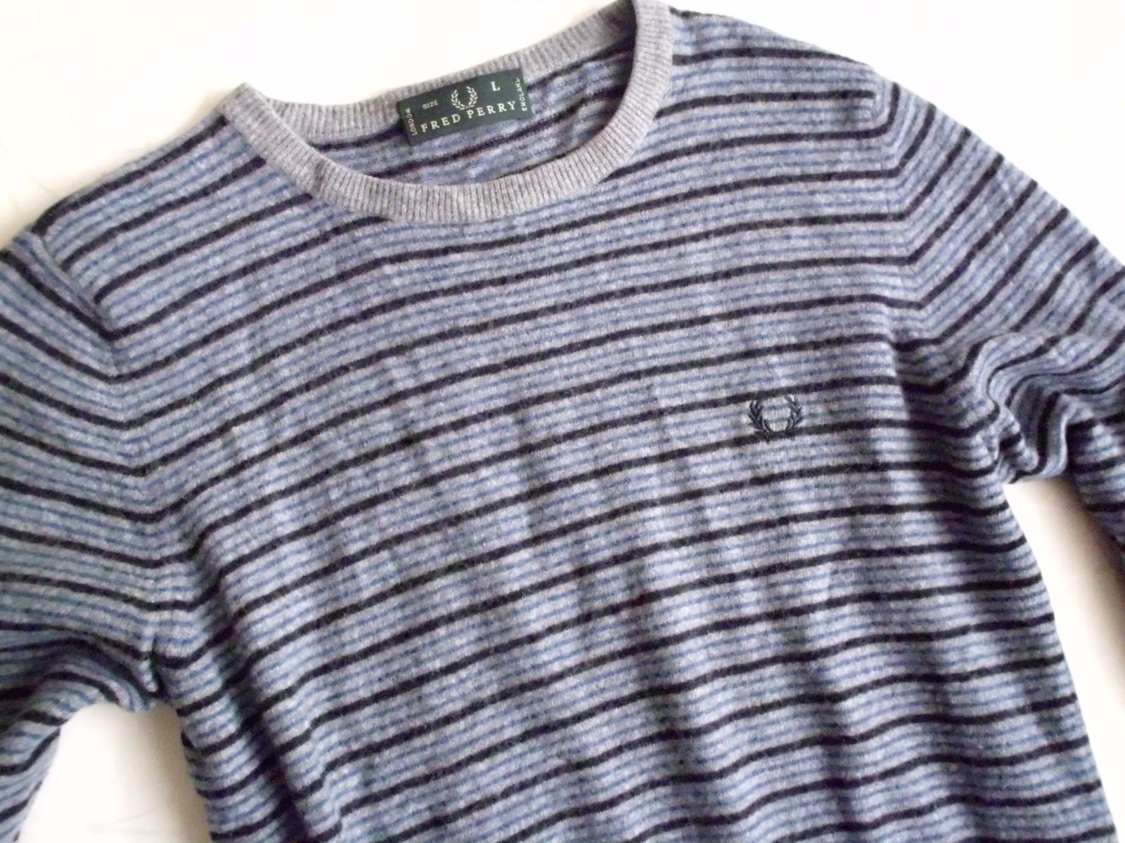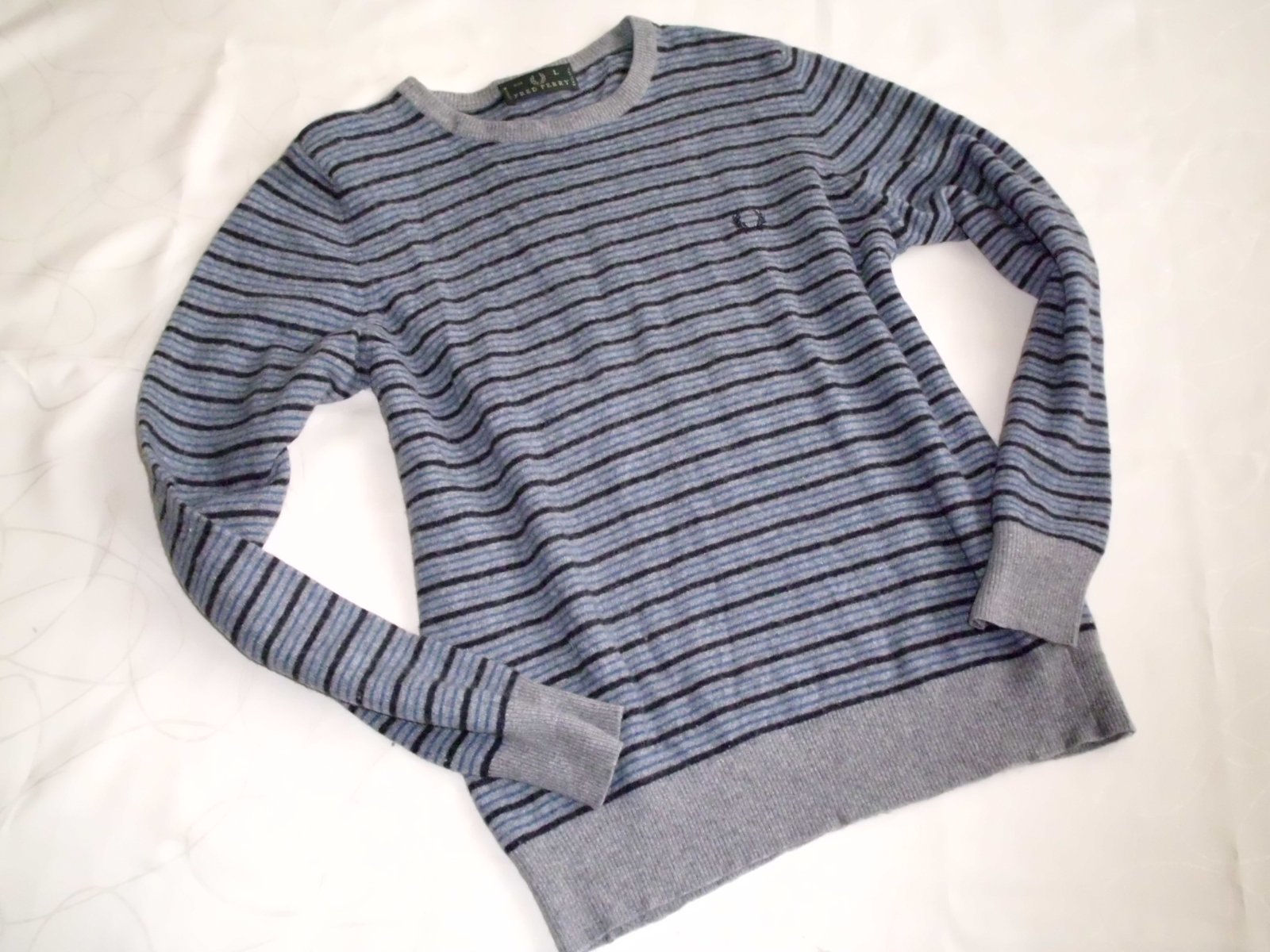 Predám pánsky sveter Fred Perry vel. L ale skôr na M , šírka 56 cm, dĺžka 74 cm, rukáv 69 cm meraný od pleca, materiál 80% vlna, veľmi mäkký- príjemný nie hrubý prispôsobí sa postave, bledošedý+bledomodrý+čierny pásik, top stav