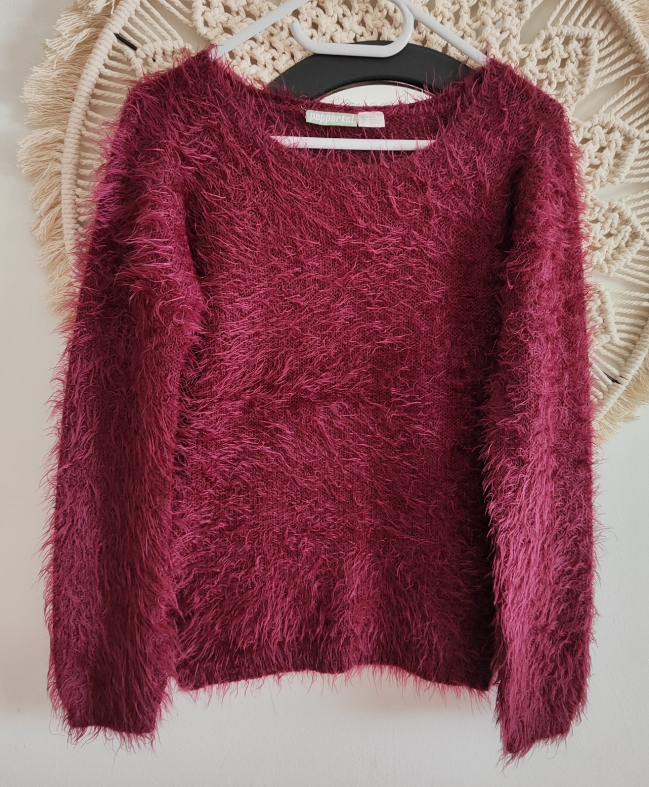 Predám huňatý, teplý svetrík, 1x oblečený, ako nový, naťahovací, takže aj pre silnejšie dievčatko. Veľkosť 122/128