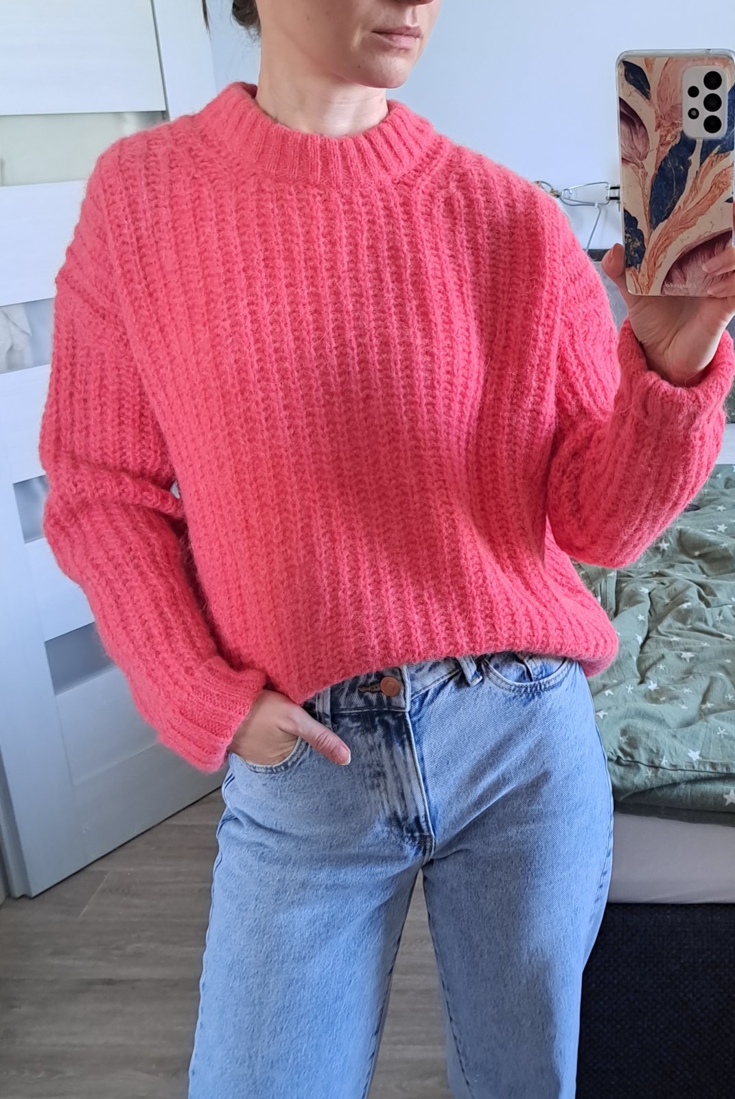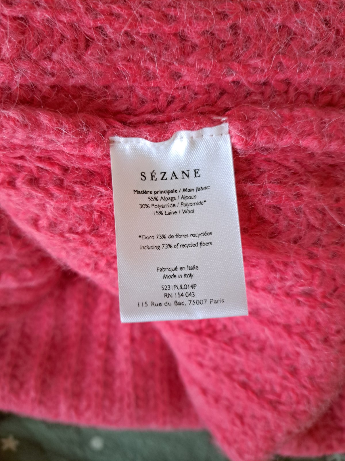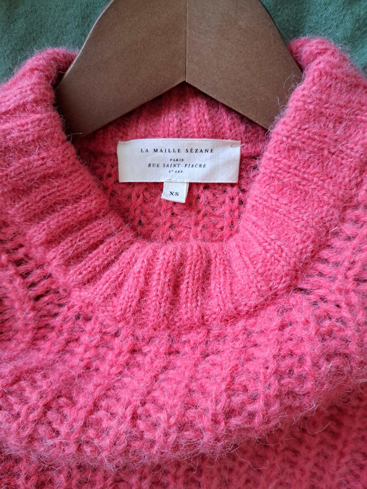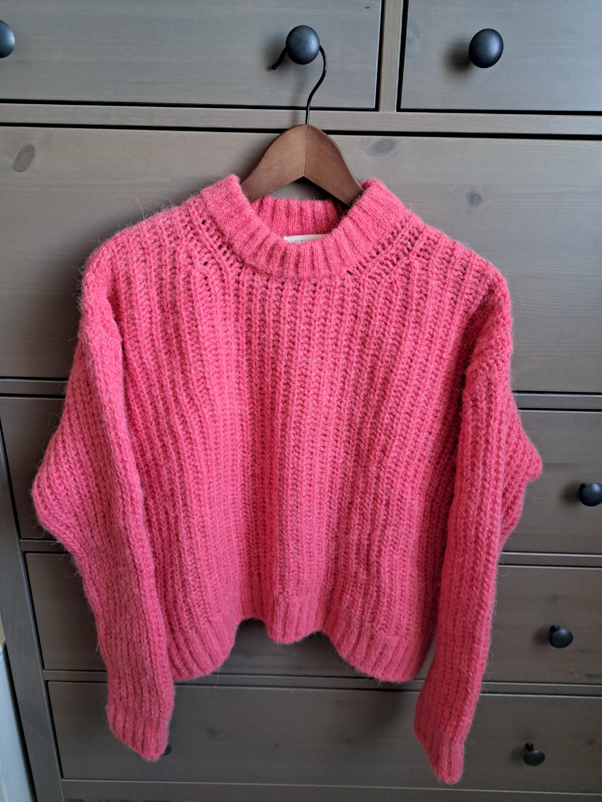Minimálne nosený svetrík značky Sezane vo farbe candy (teplá ružová), veľkosť XS, ale naozaj oversized, cez prsia: 61cm, dĺžka 51cm. Chunky knit, zloženie: baby alpaca, celé na foto. 100% stav.