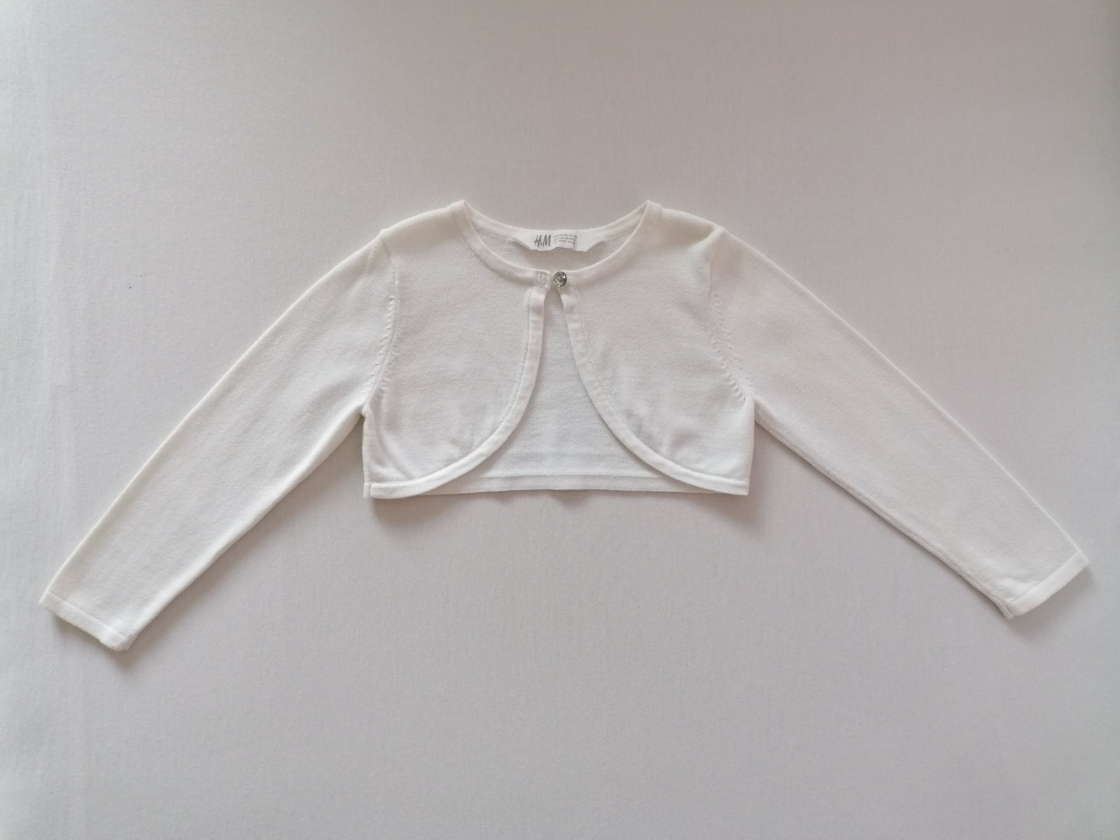 Krasne, upletove bolerko s dlhym rukavom, so zapinanim na jeden gombicek vpredu, idealne k akymkolvek šatám. Dvojcislo 98/104. Vyborny stav.