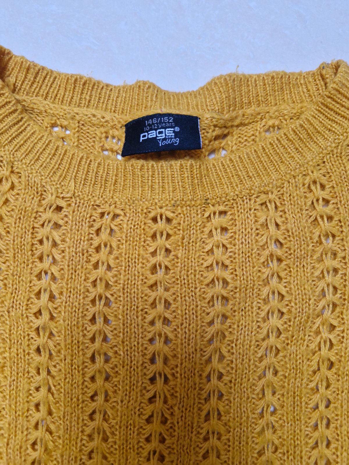 Crop top svetrík cez hlavu. Má v sebe lesklé vlákno. Veľ. 146/152