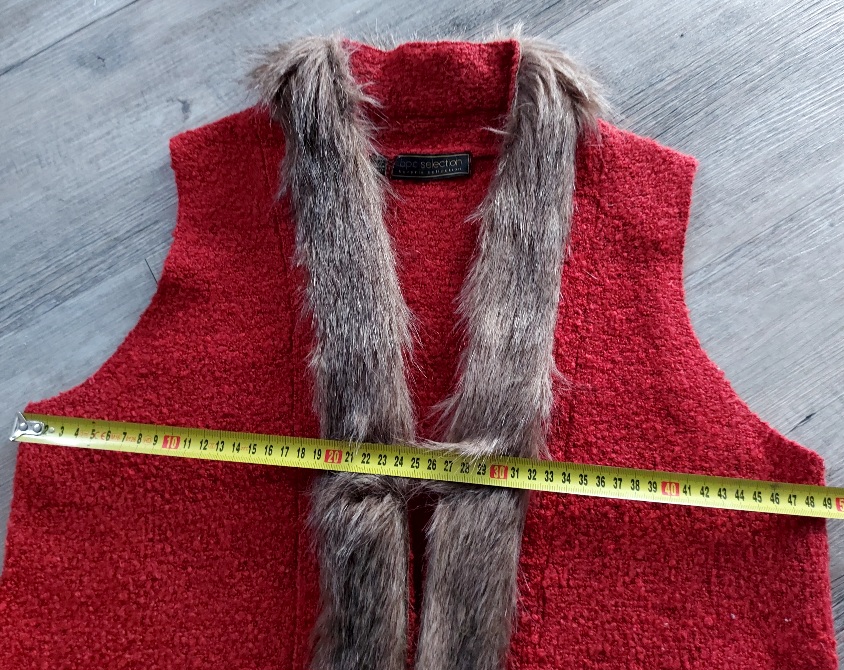 Oranžová vesta s kožušinovým lemom, bez poškodenia.