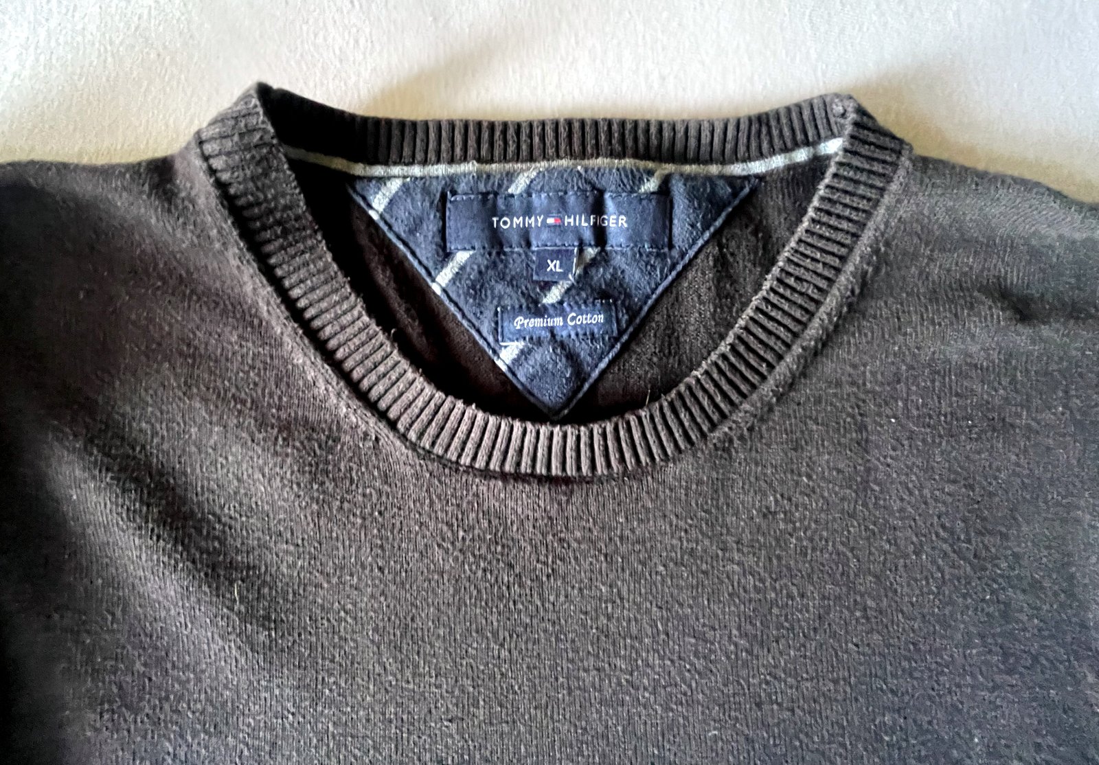 Pánsky čierny sveter Tommy Hilfiger. Veľkosť XL. Rozmery: dĺžka 67 cm, šírka v podpazuší 2x60 cm, dĺžka rukáva od podpazušia 51 cm, od ramena 65 cm.