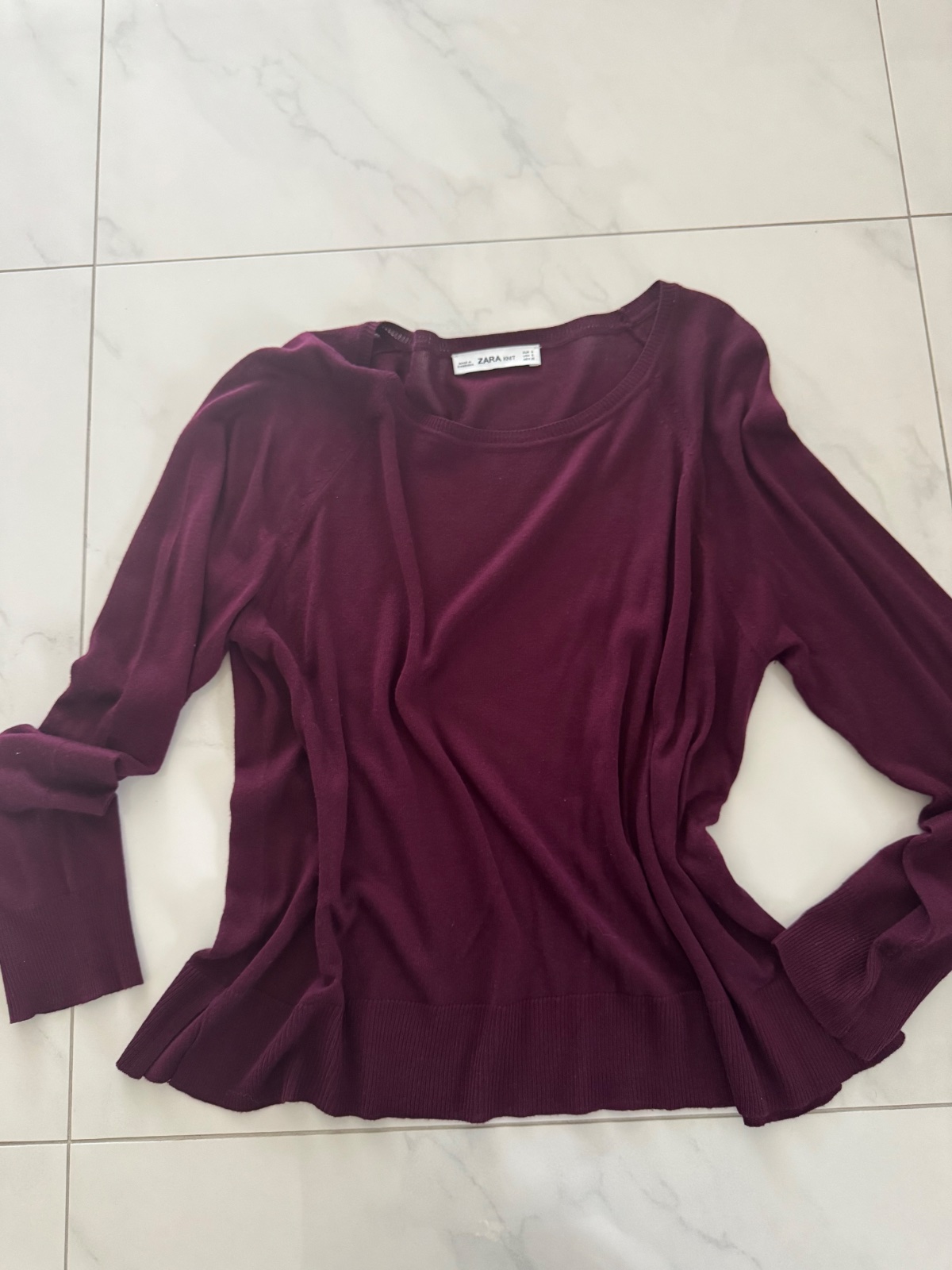 Predám sveter v burgundy farbe značky Zara vo veľkosti S. Nosený sporadicky, bez poškodenia. PC- 15,95 €.