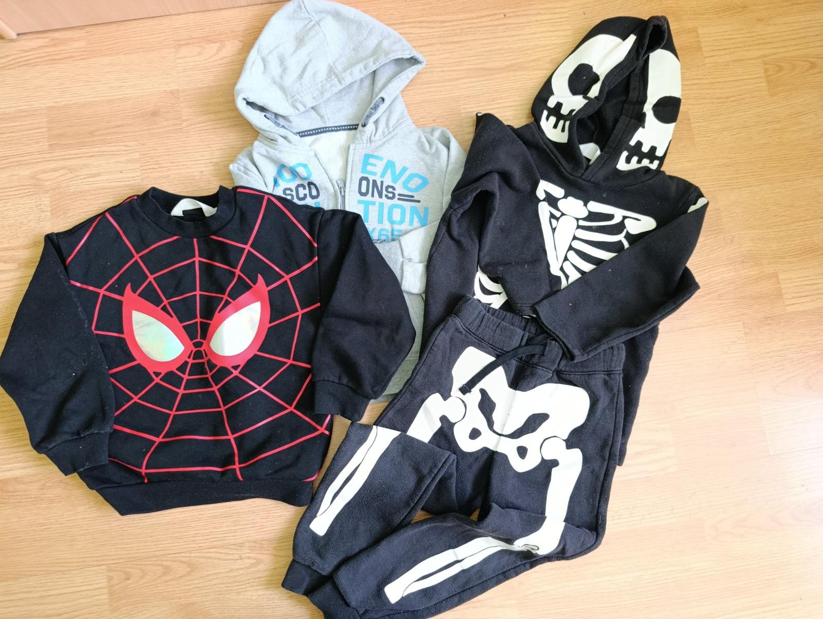 Teplákové mikiny veľkosti 110/116, značka HM a Takko. Nosené. Mikina Spiderman veľmi málo nosené ako nová, ostane nosené avšak dobrý stav. Predávam spolu.