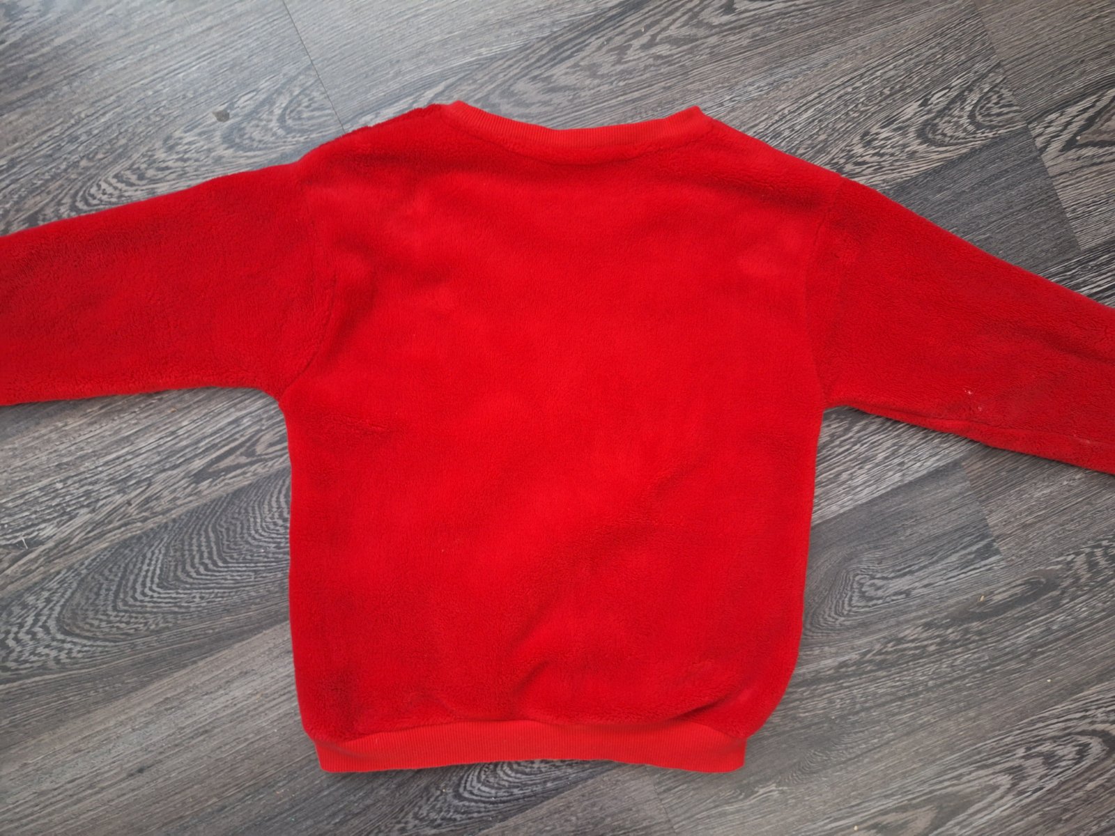 Svetrík v zachovalom nosenom stave, farba je trochu spraná no stále sýta červená, mini žmolky ale ináč vhodný na parádenie. Rozmery: celková dĺžka 45cm, šírka pod pazuchami 36cm, rukáv od ramena 42...