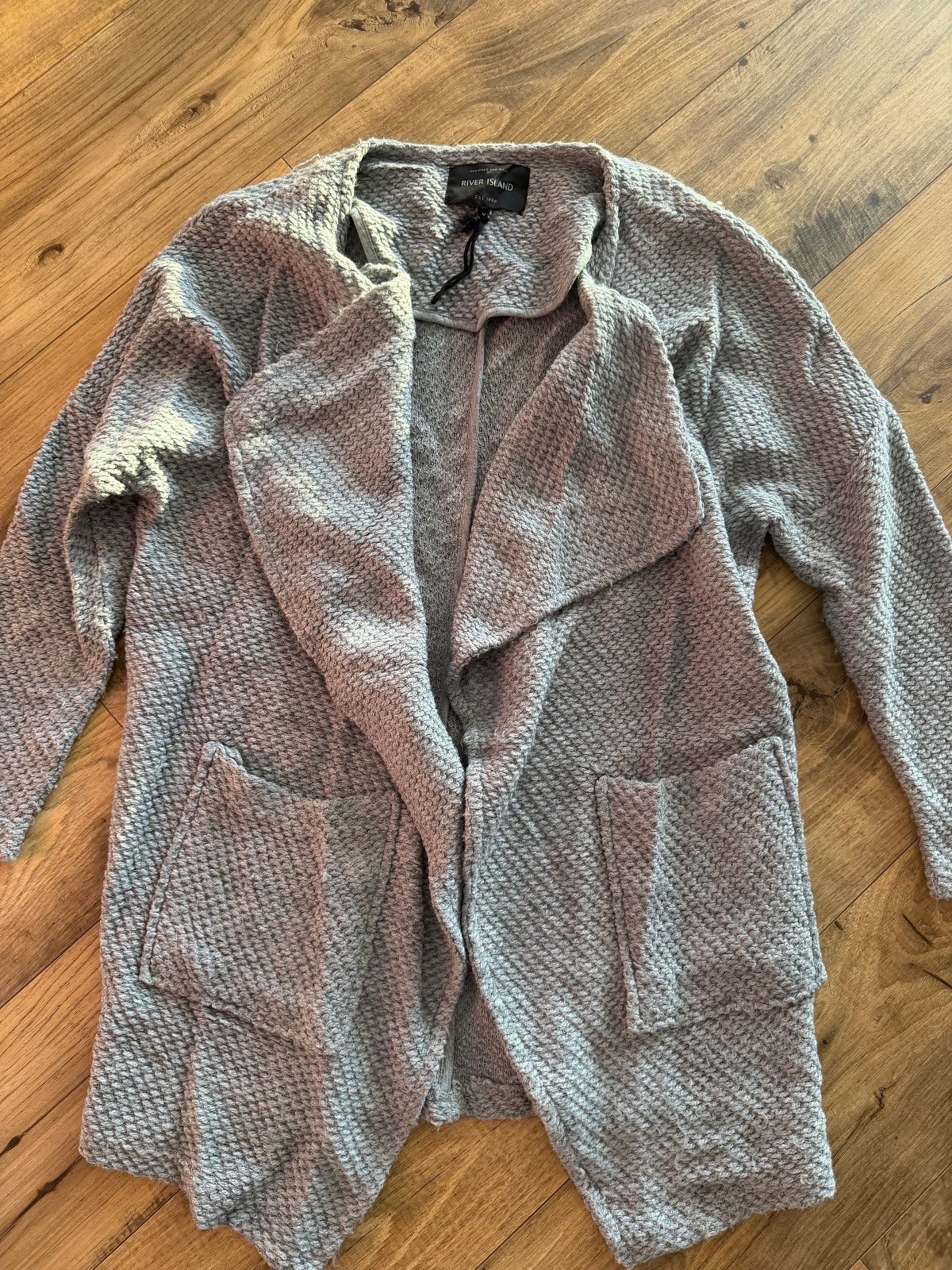 Výborný stav, úpletovy top, veľkosť 38,šírka pod pazuchami 39 cm, dĺžka 54 cm, k nemu kardigan S oversized, sedí na S/M, šírka pod pazuchami 56 cm, dĺžka 68 cm