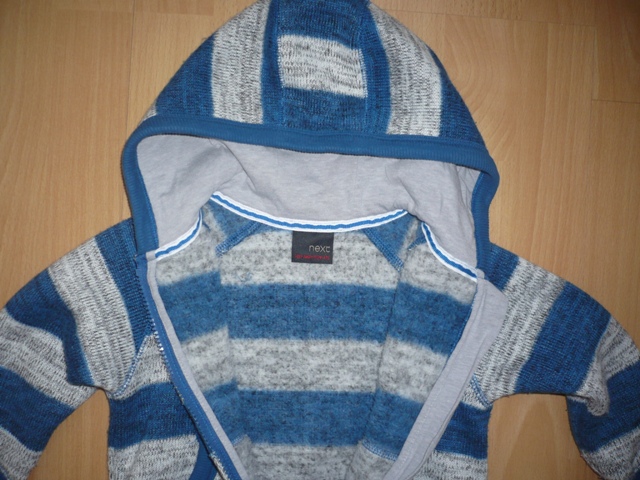 Krásny teplučký mikinosvetrík na zips, s kapuckou a s vreckami na predu,nosený na striedačku s inými. Mierne minižmolky no tomu sa pri tomto materiály nedá zabrániť. Inak bez poškodení v super stave. Farba šedo modrá