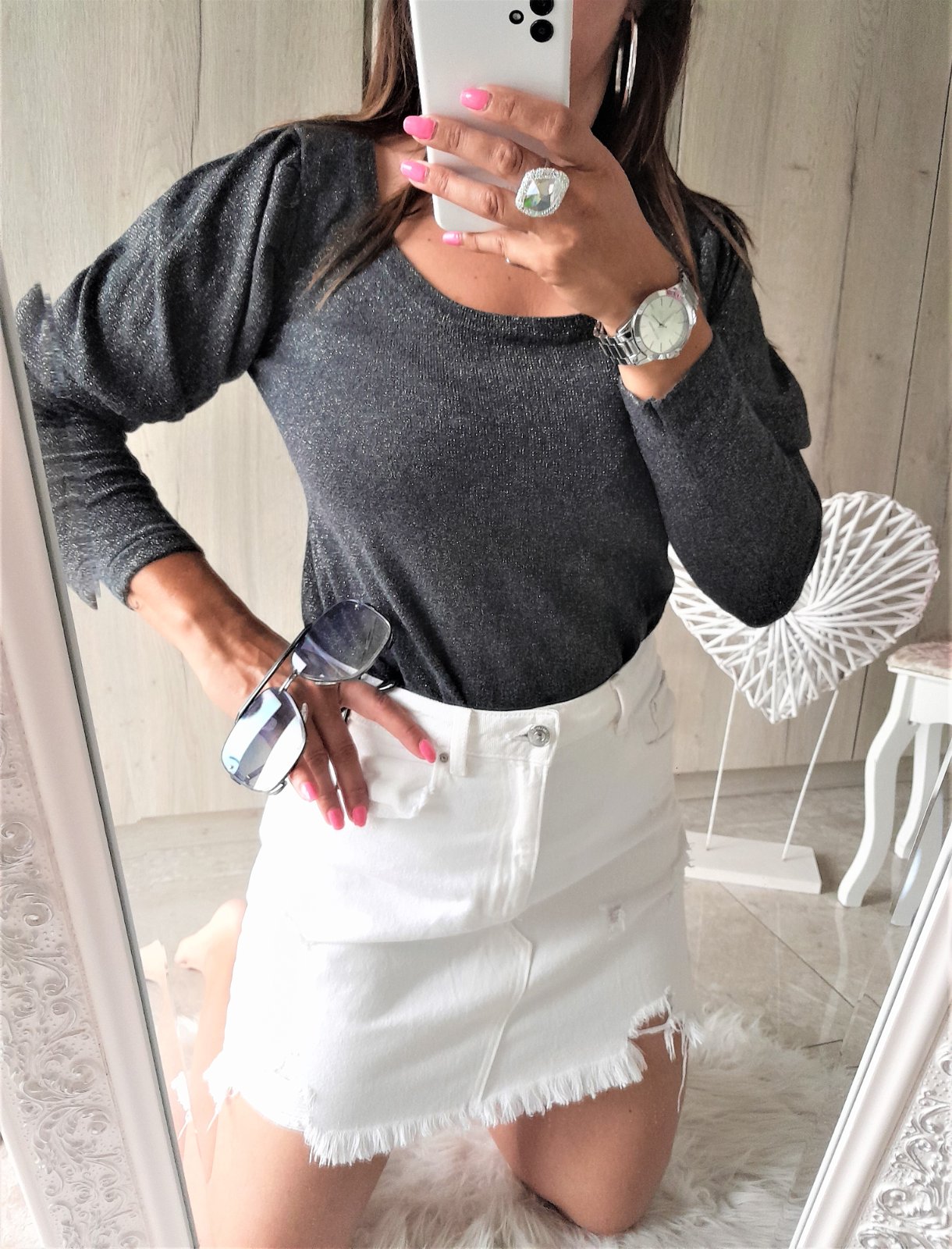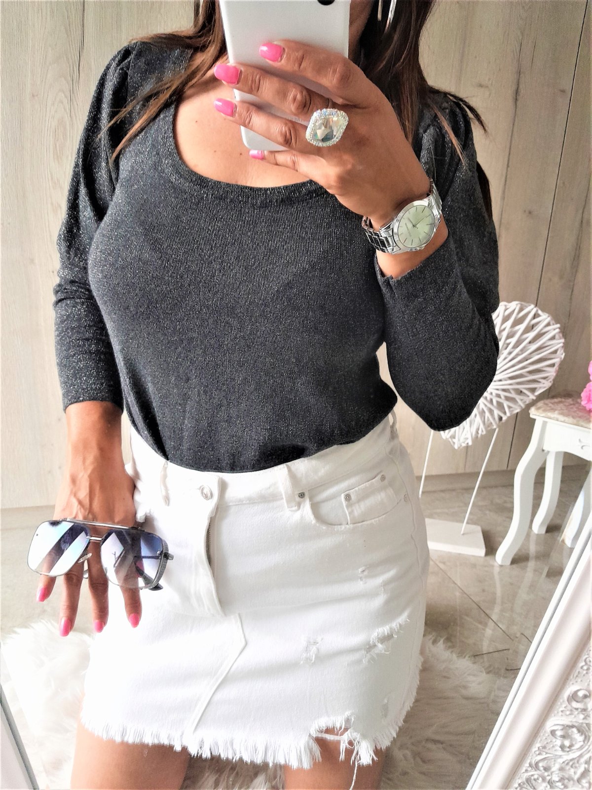 Svetrík s lurexom+naberané rukávy-M