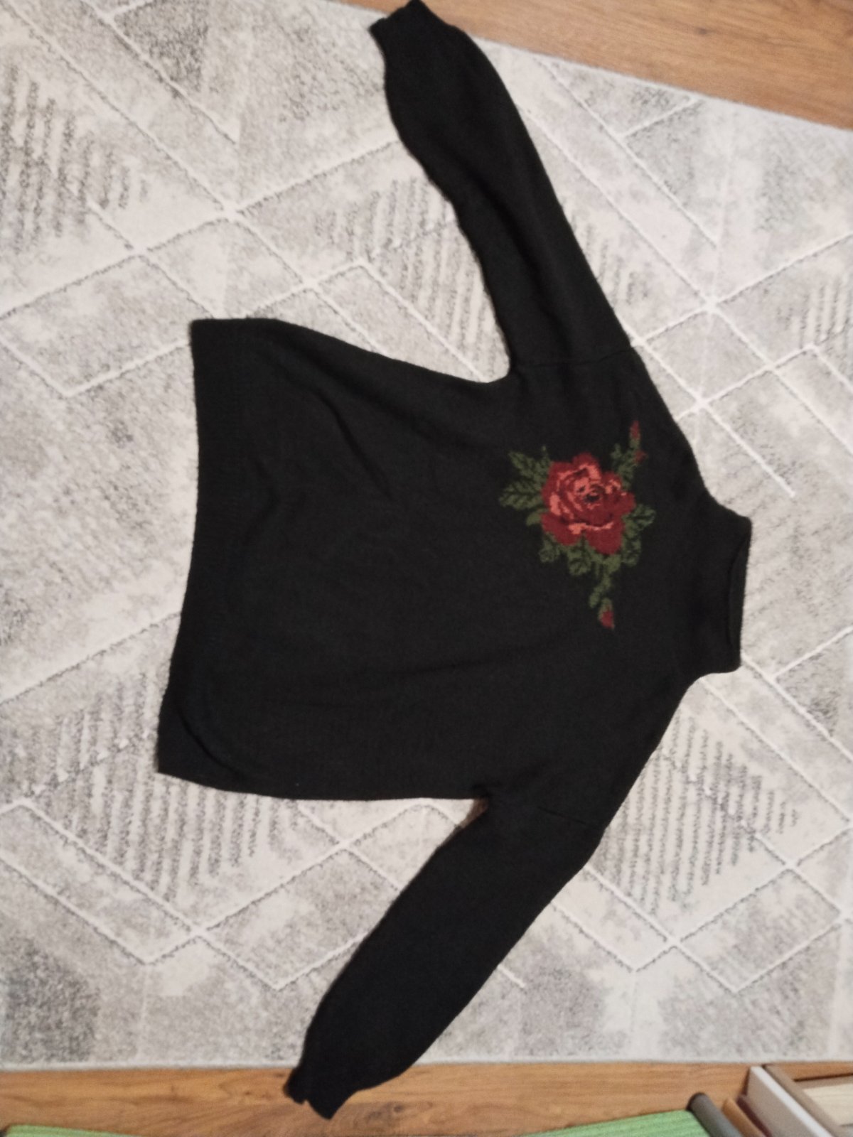 Čierny pulóver so zlatou niťou, vytvára elegantný efekt, nestihla som vynosiť, tak opraný len čakal na novú majiteľku :) Efektný véčkový výstrih vpredu a vzadu zips :) veľkosť S, voľnejší strih