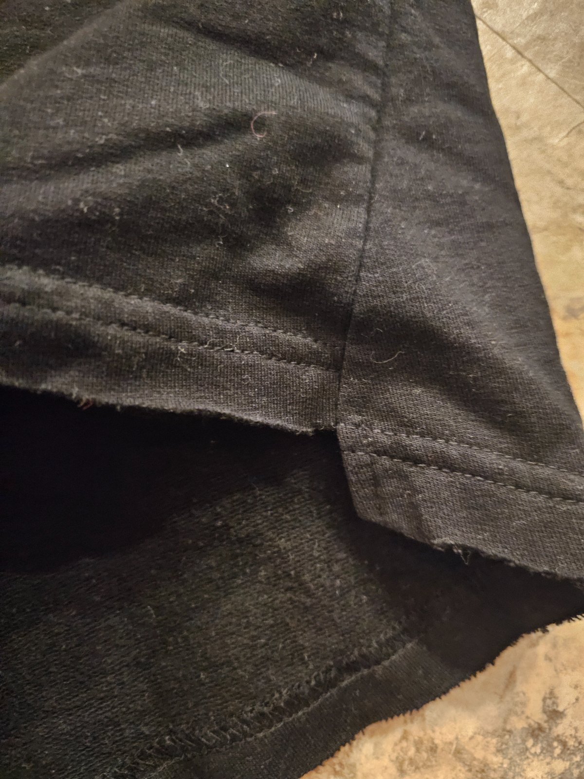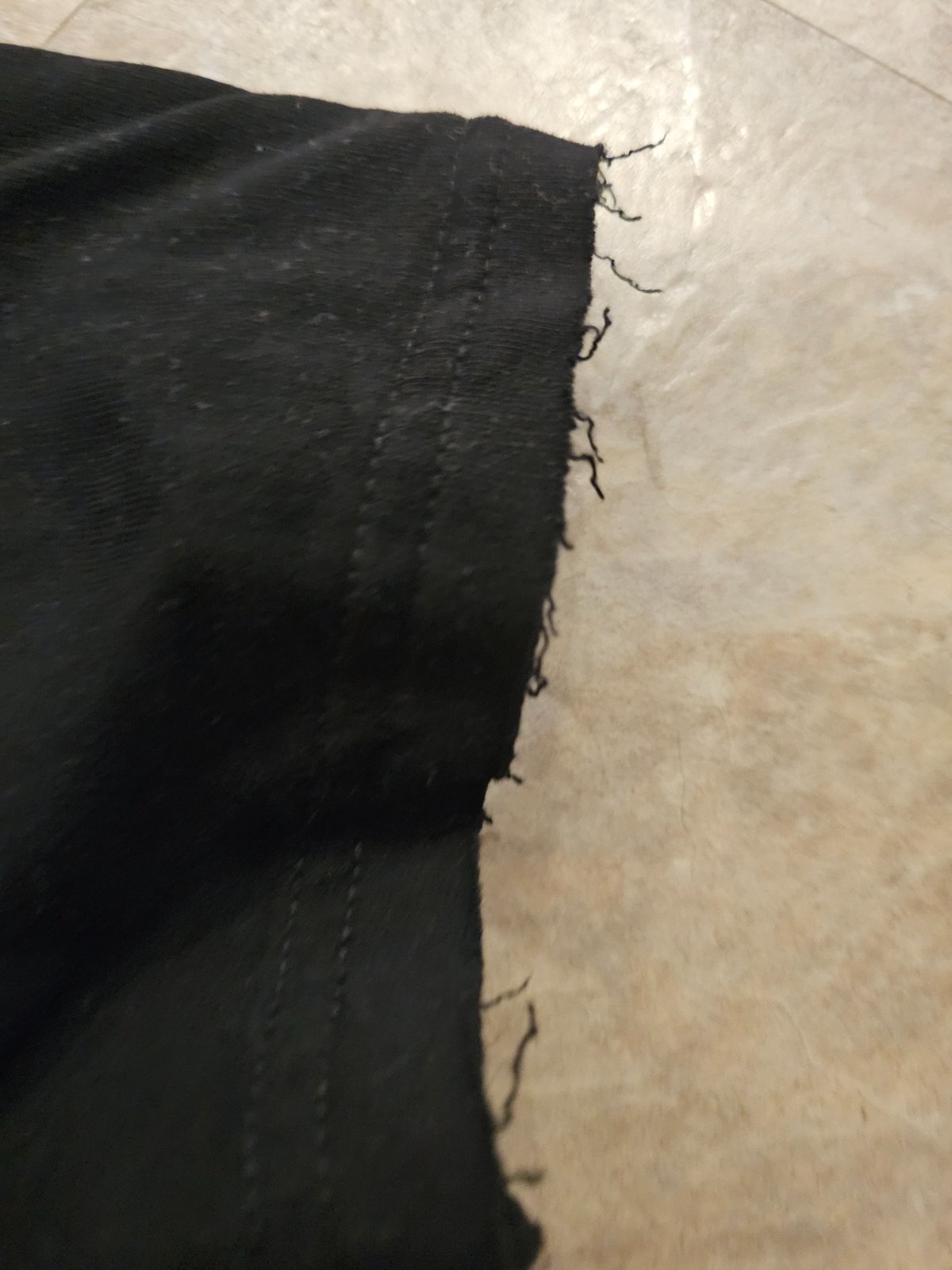 Vpredu kratsi, vzadu dlhsi, kapuca napevno, rukavy rozstrapkane - tak to bolo.kupene. dlzka vpredu 46,5cm vzadu 57cm, sirka 49cm.
