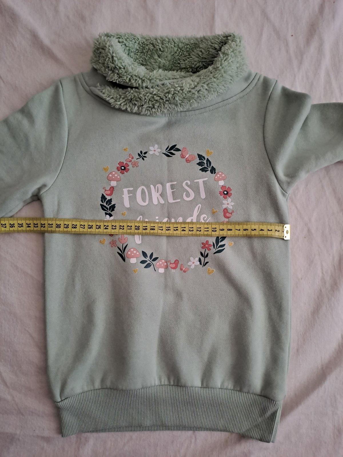 Nová mikina, veľ. 116, zelená farba, s motívom, mierne zateplená