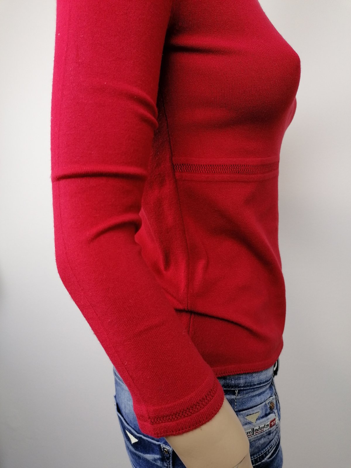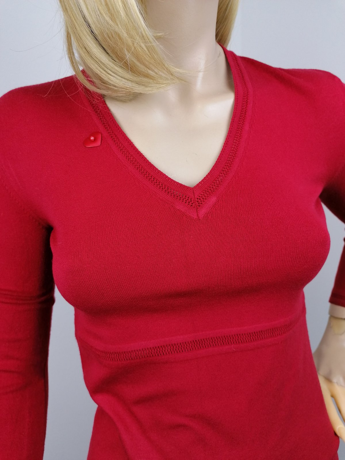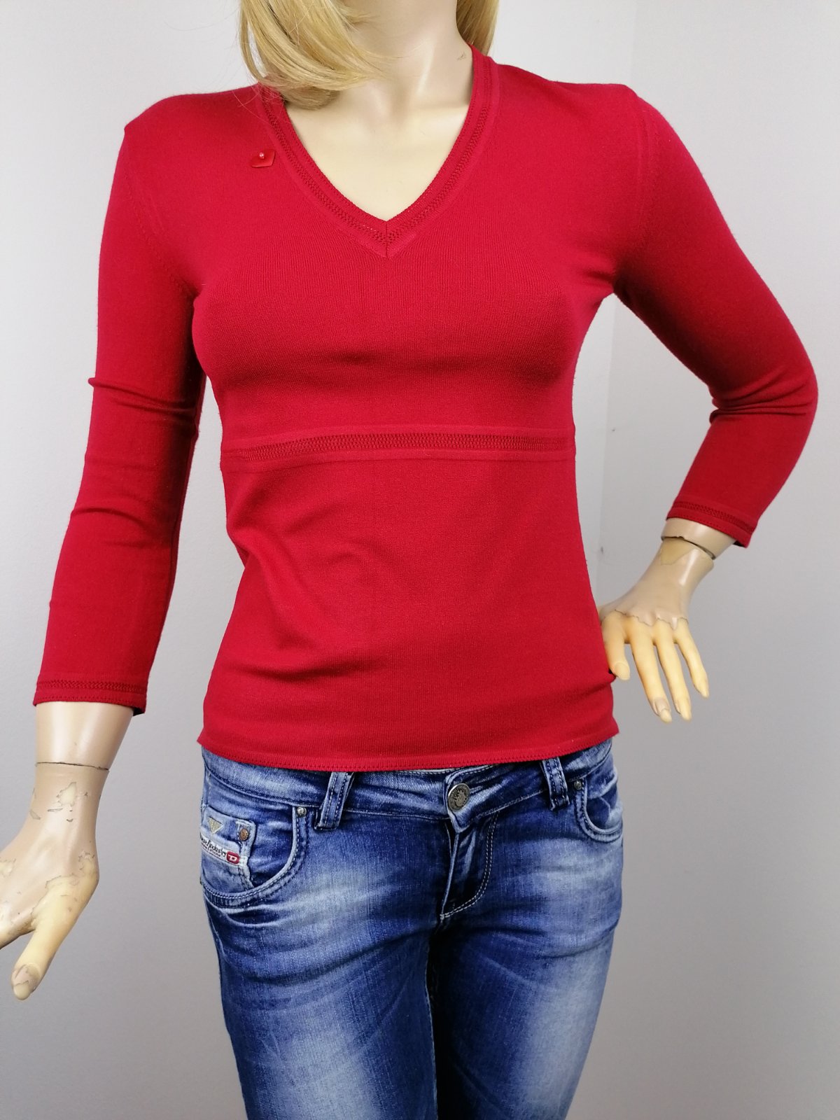 Krásny karmínovo červený svetrík od luxusnej značky MARELLA s trištvrťovými rukávmy.