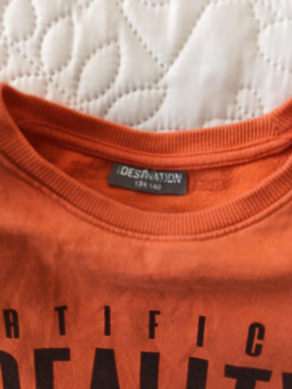 Pekný nosený stav. Na oranžovom malý fliačiky na rukáve. Dvojčíslo 134/140