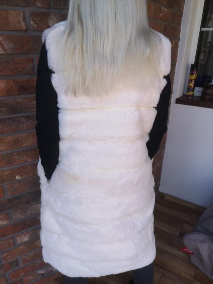 biela šuštáková vesta s podsívkou, velkosť 40, vrecka na zips, zapínanie na zips, okraje vesty sú s upletu, dlžka 66, prsia 50,