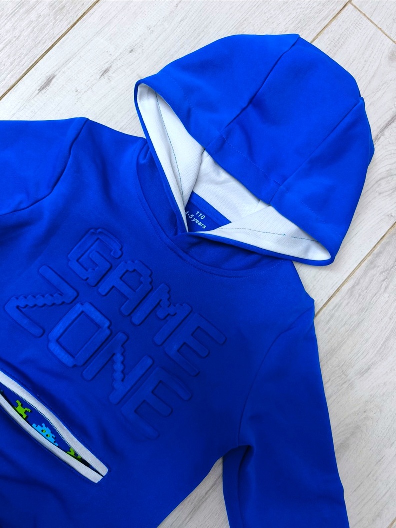 V perfektnom stave mikinka s 3D nápisom a "tajným" vreckom - po rozopnuti vidno potlač s panačikmi, veľkosť 110.