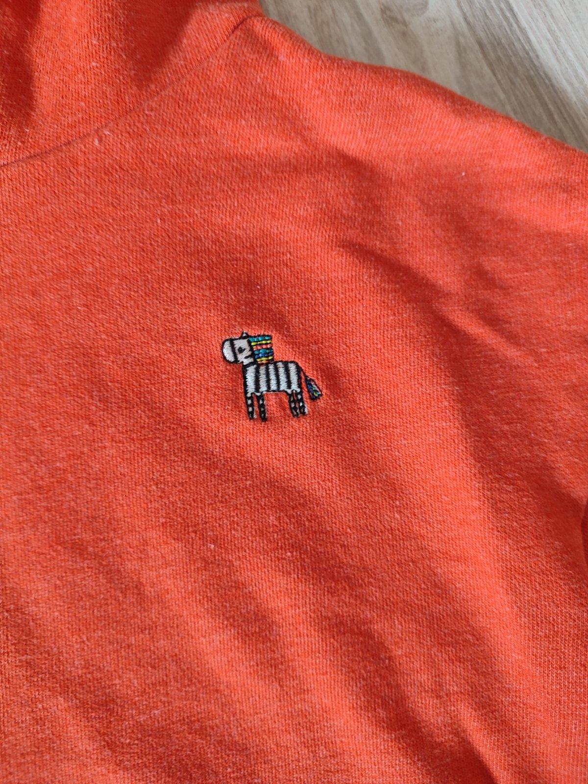 Ponúkam na predaj oranžovú predĺženú mikinu, zateplenu, veľ. 92.