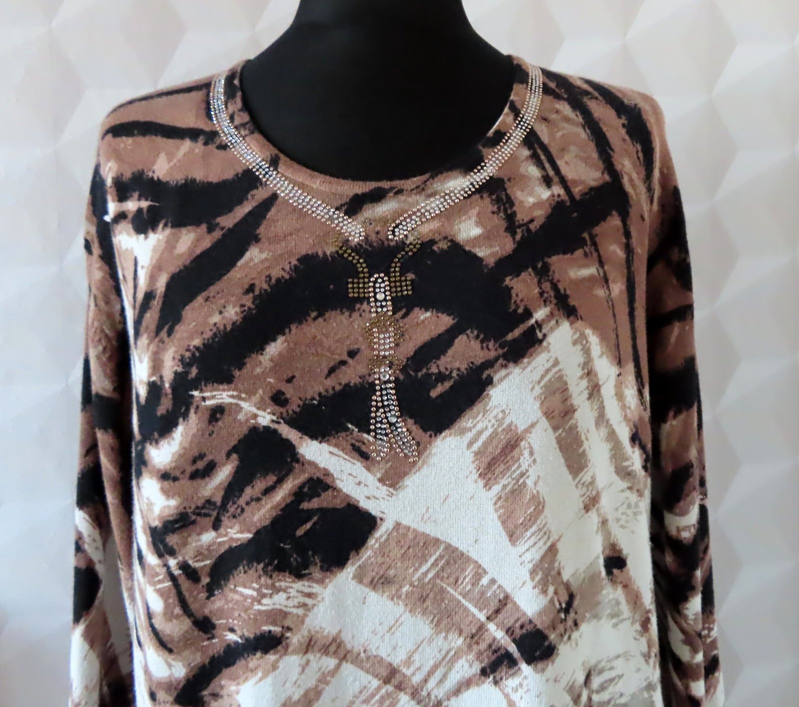Dámsky pulóver Italskej značky, veľ. XXL - rozmery: dĺžka 64cm, pod pazuchami 2x58cm, rukáv od krku 74, od pleca 60 a od pazuchy 44cm