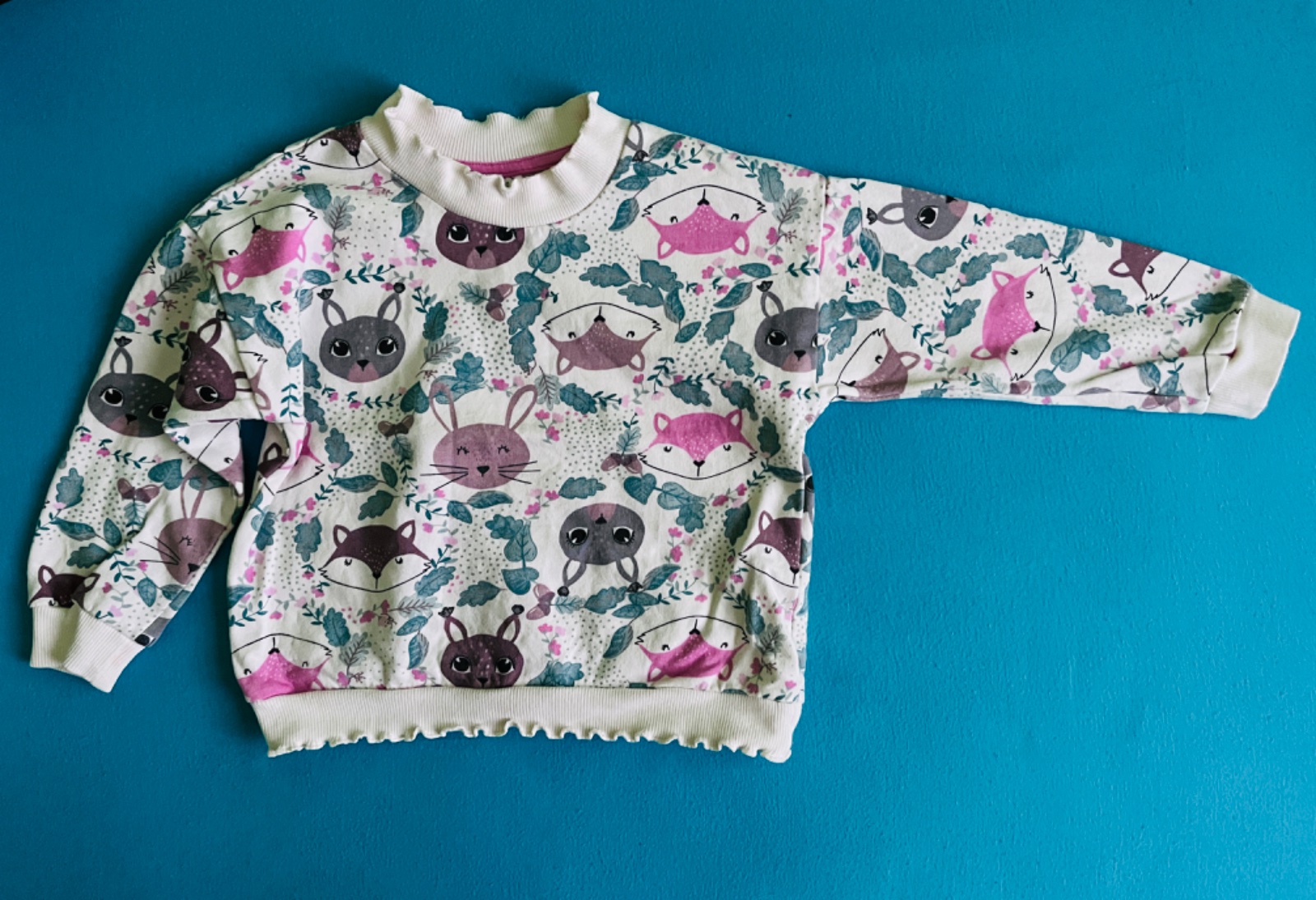 Top stav raz oblečená zvnútra trochu oteplená akurát dcérka v nej maľovala a na jednom rukáve kúsok farby možno to pojde s niečim vyprať pozrite foto..110 píše veľkosť no skôr je to 104 na 4-5rokov