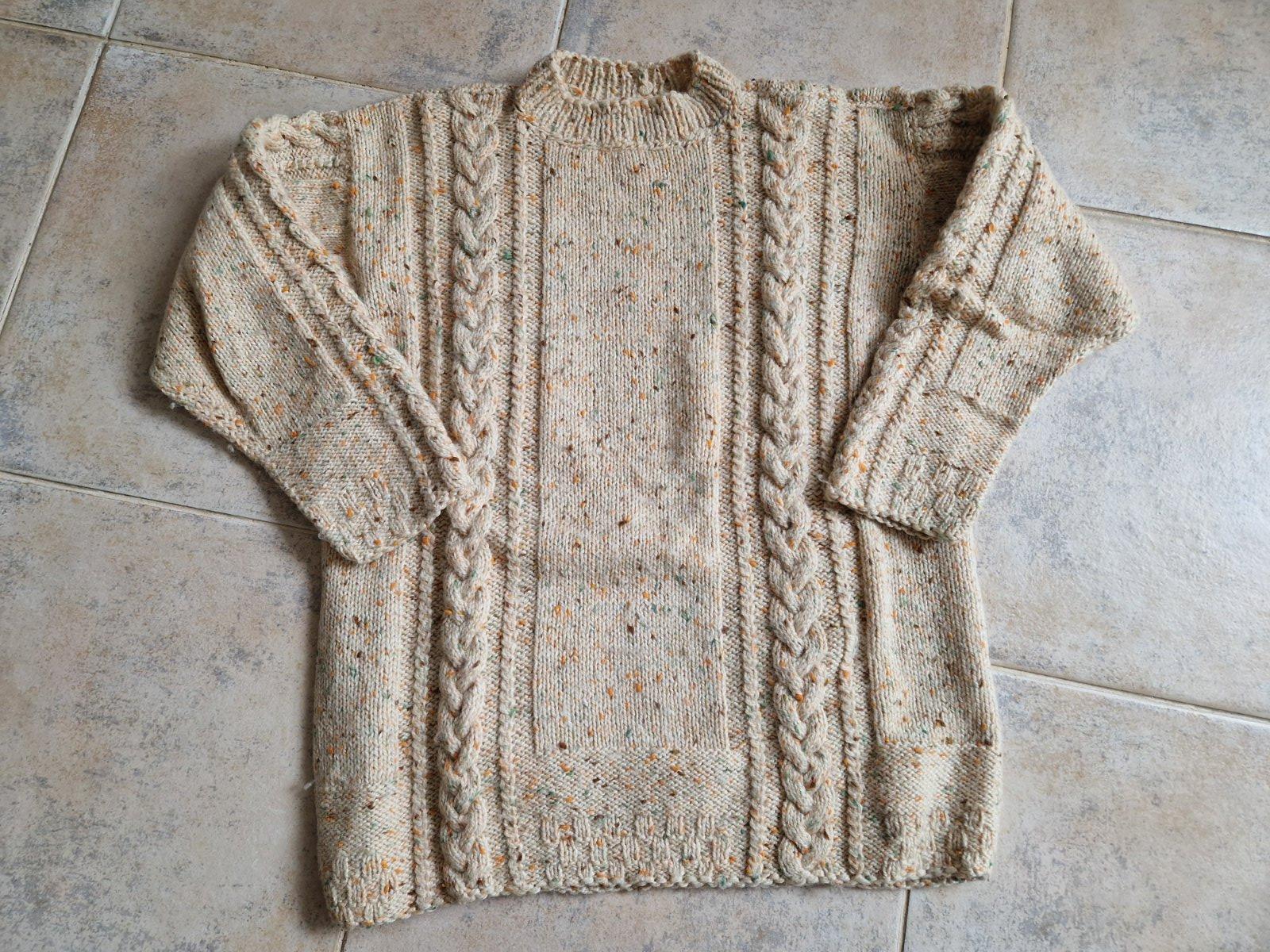 Volný sveter dĺžka 70cm, pod pazuchami 54cm, rukáv 46cm, sedielko 17cm. Oversize.