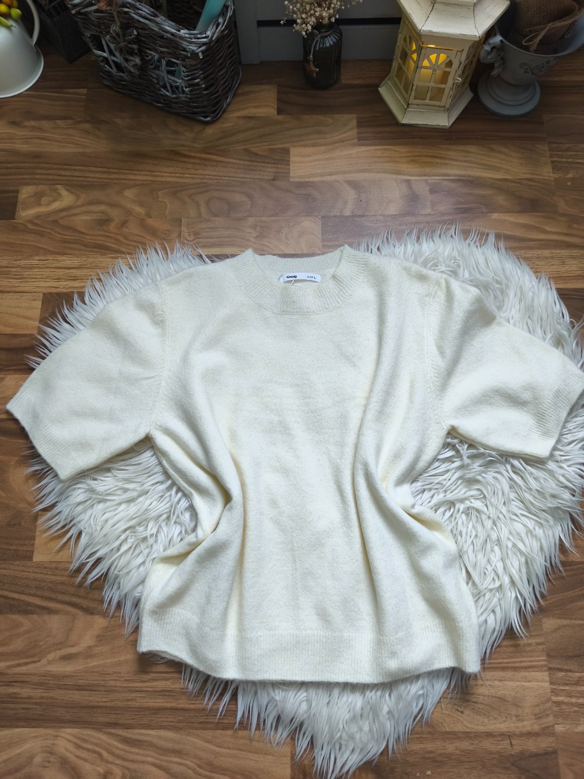 Dámsky štýlový pulóver s krátkym rukávom, pekná bledo žltá farba.