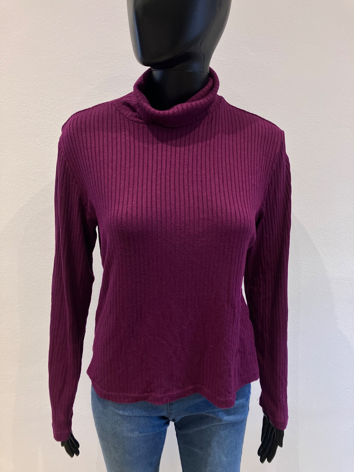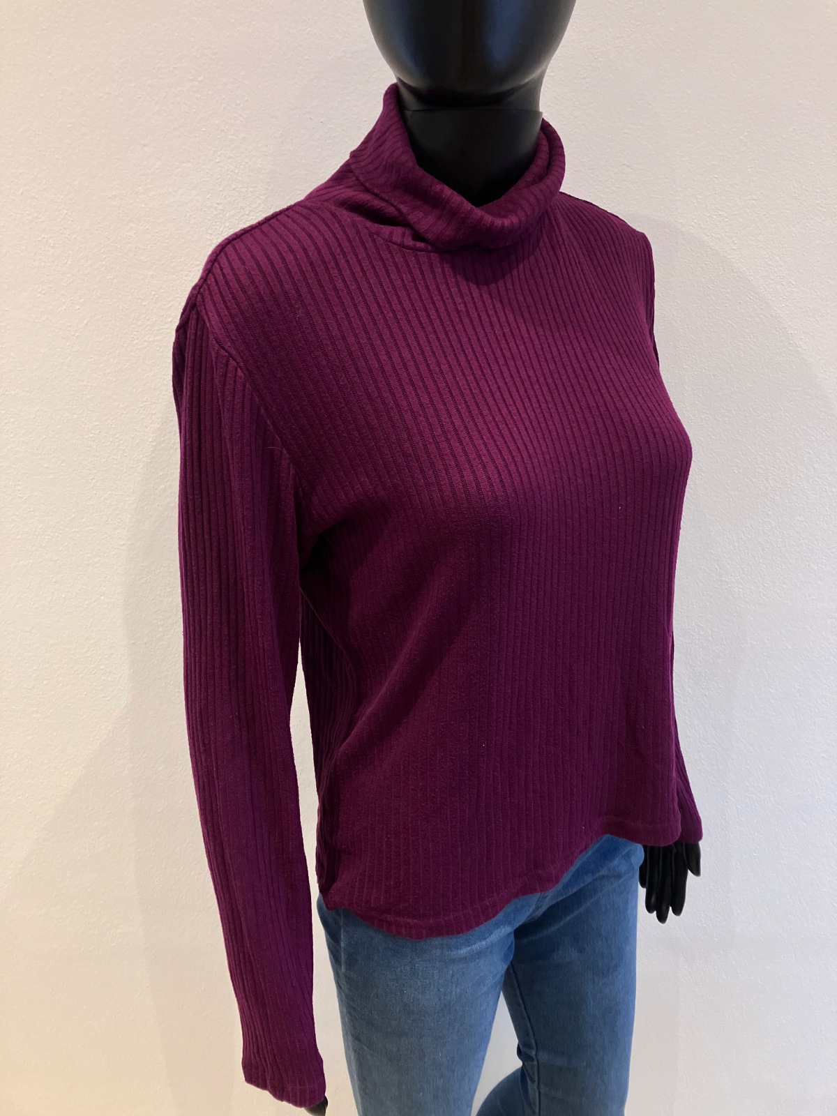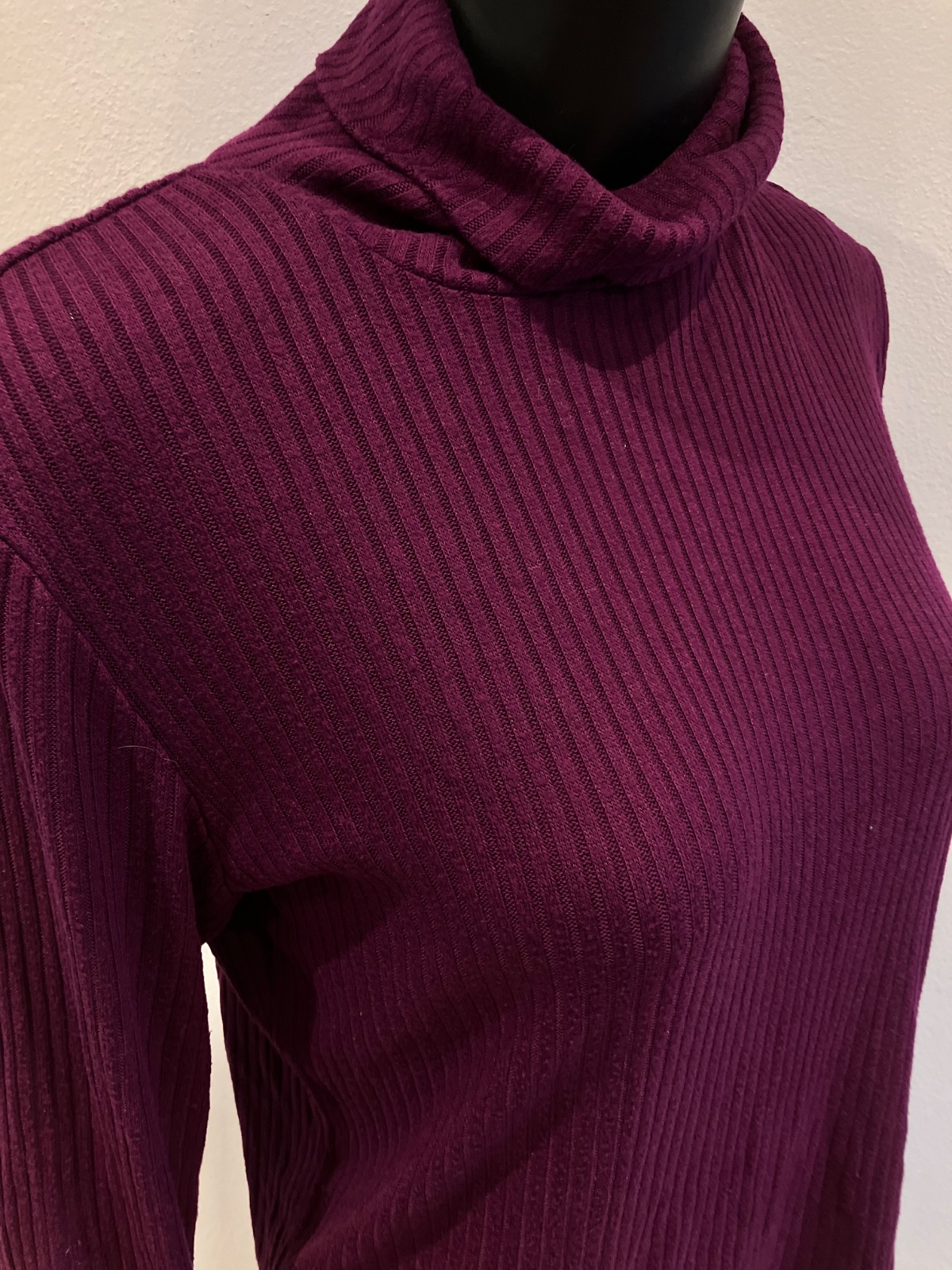Dámsky fiaľový rolák, rebrovaný, elastické.