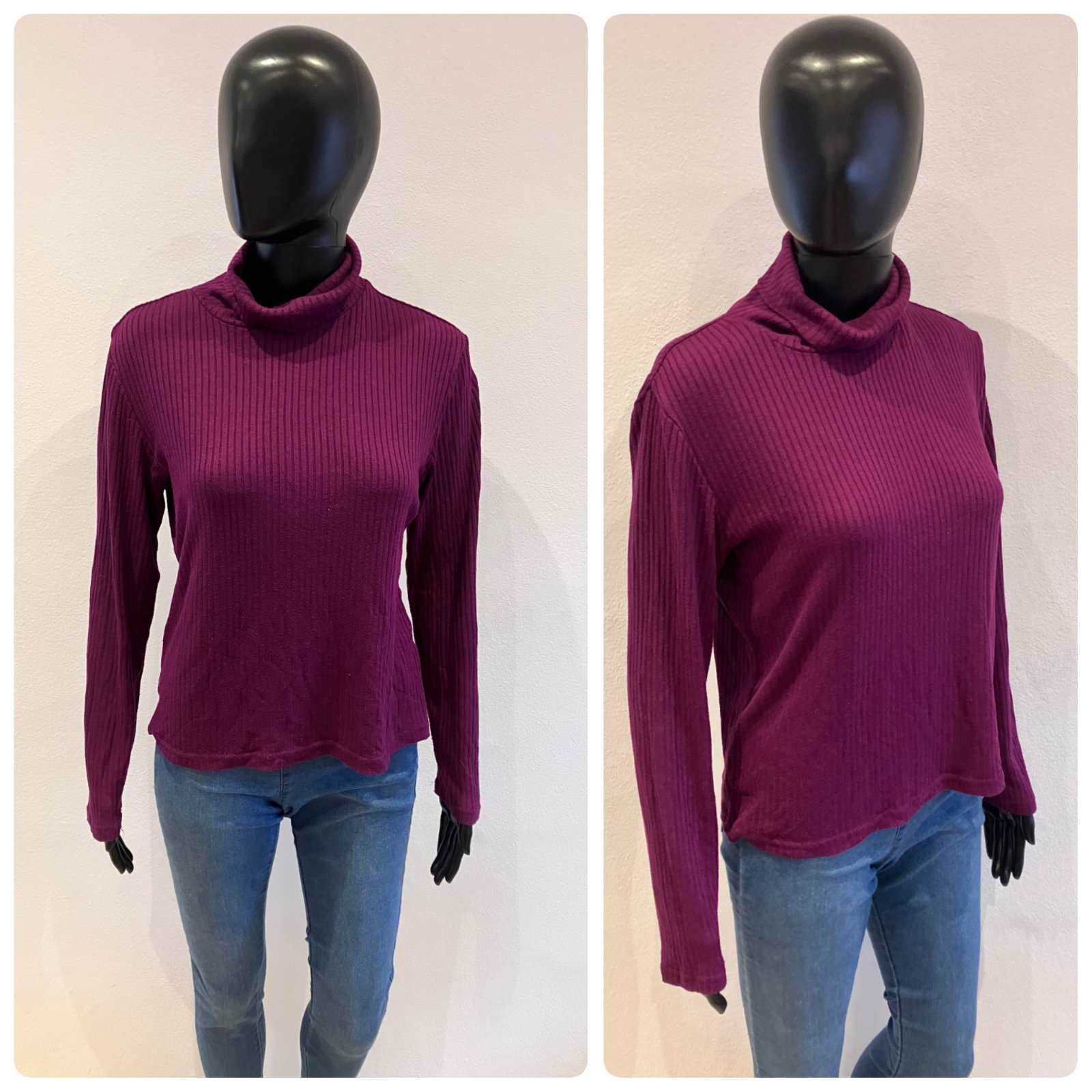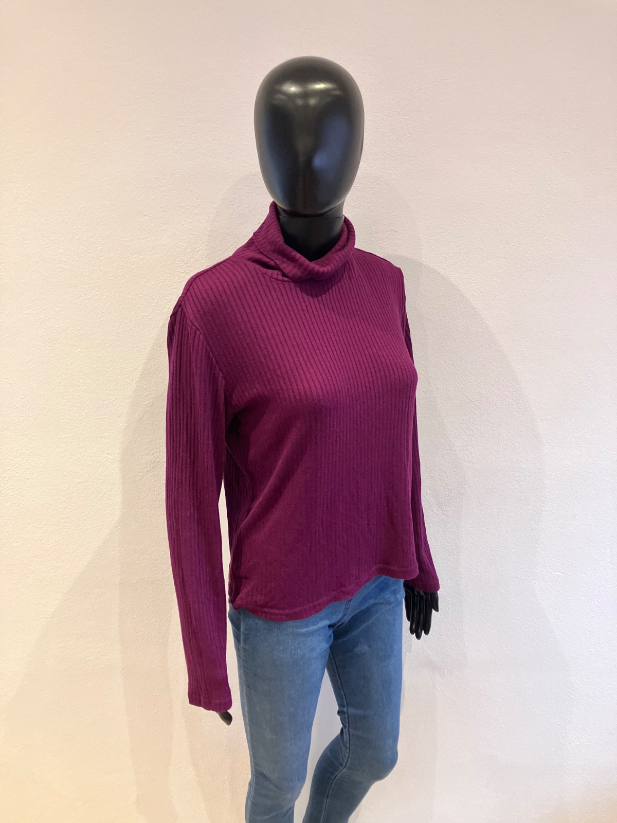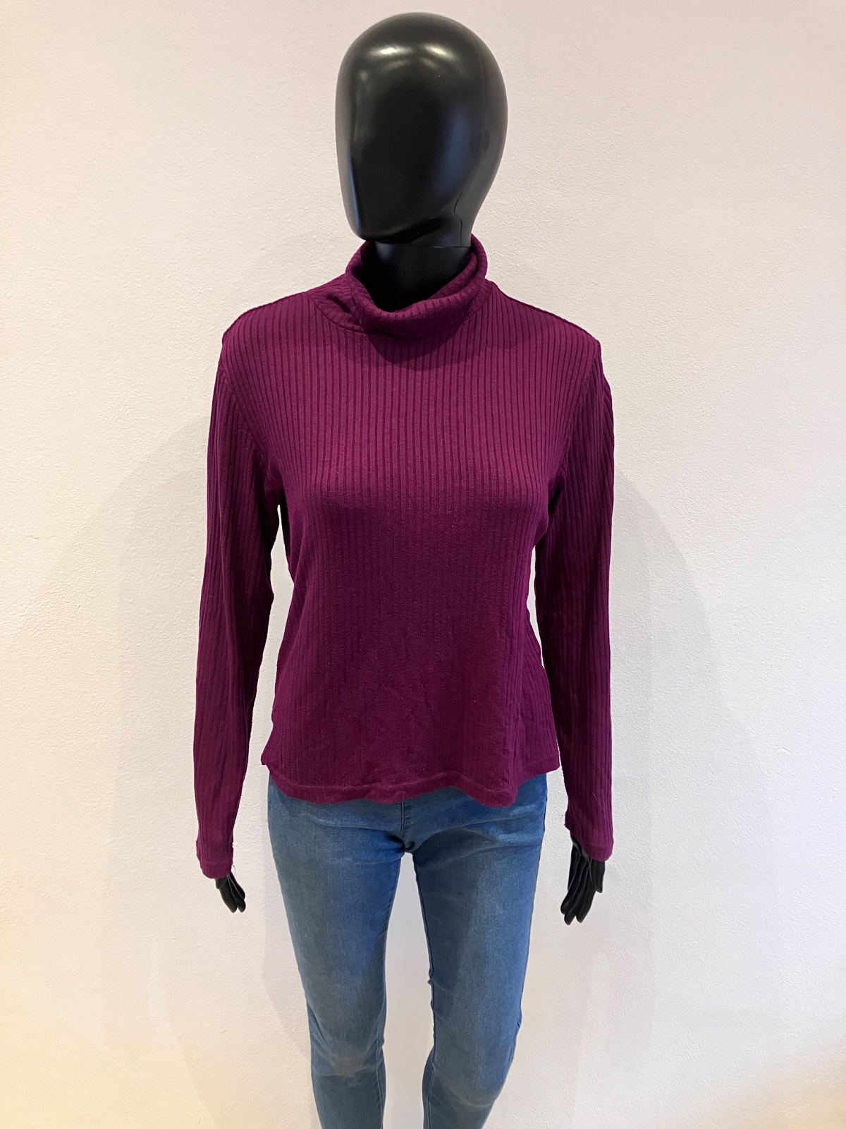 Dámsky fiaľový rolák, rebrovaný, elastické.