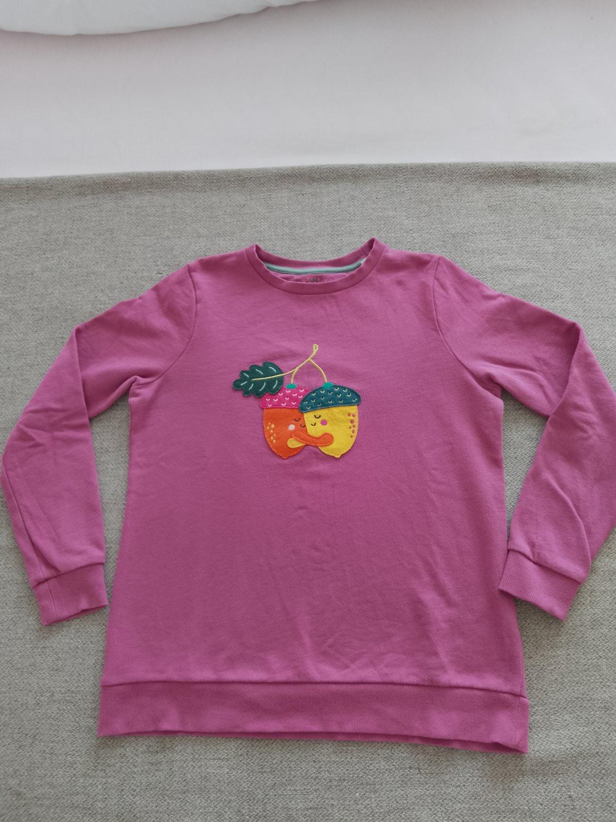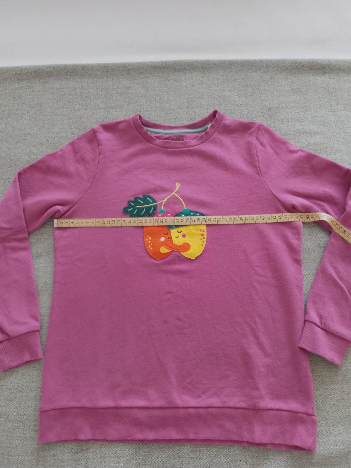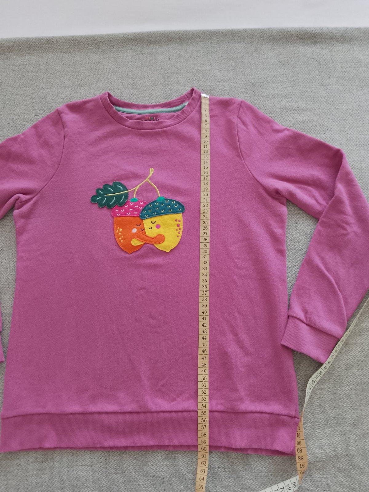 Dievčenská mikina v super nosenom stave. Oblečená bola len pár krát. Bez poškodenia, dier a fľakov. Rozmery - viď foto. Na prednom diely je našitá aplikácia. Veľmi príjemný, mäkučký materiál. Dobre sa nosí.
