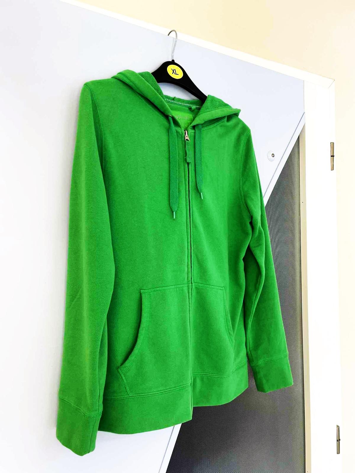 neznosená veľmi kvalitná mikina,výborný materiál,kvalitné švy,krásne sedí,s vreckami vpredu,perfektne vypracovaná,farba stredne zelená sýta -pestrá,šírka = 50 cm x 2, ramená = 9,5 cm, rukáv = 63 cm,dlžka = 68 cm