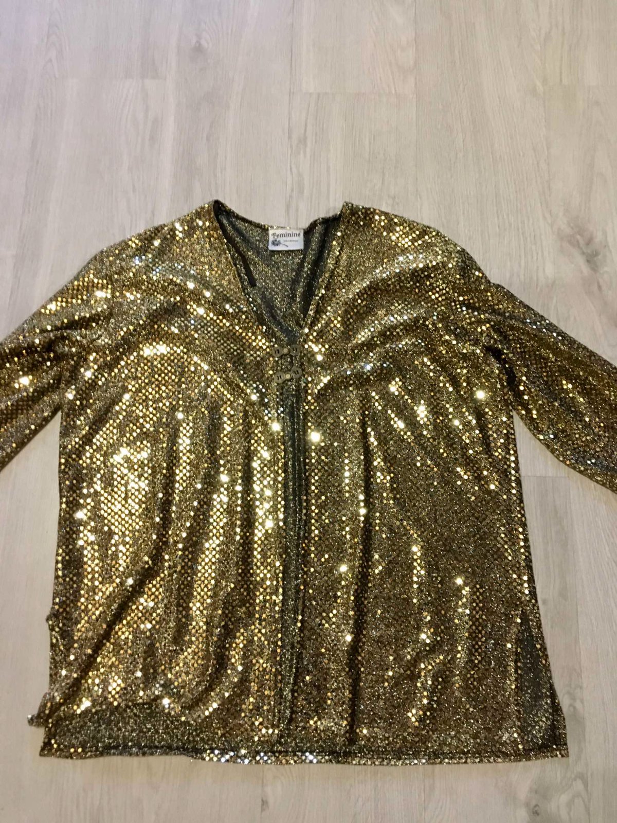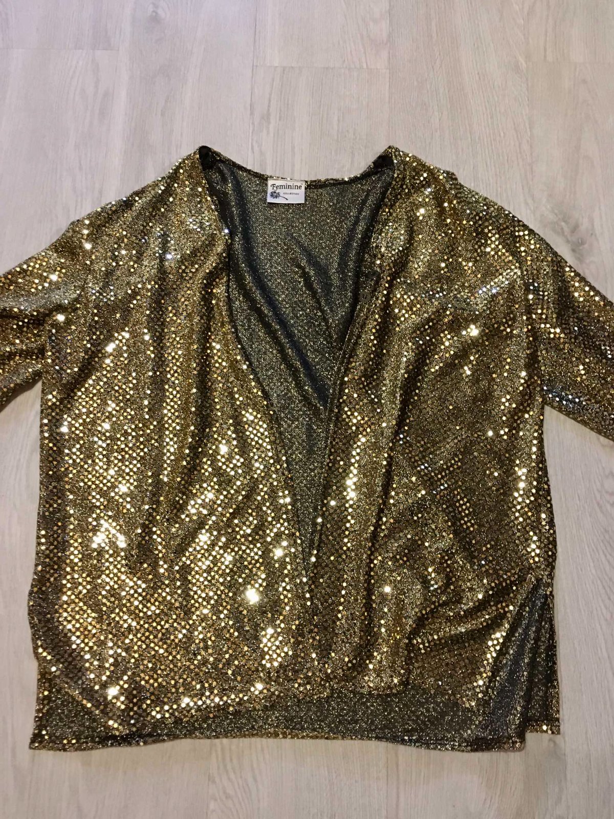 predam damsky stylovy luxusny feminine collection gold damsky trblietavy cardigan-sveter-pulover,velkost xxl-xxxl,obleceny tak 2x ako novy,dovezeny zo zahranicia jedinecny kusok