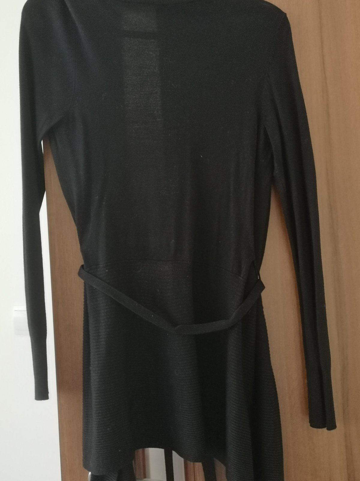 Predám tento čierny svetrík značky Orsay. Veľkosť je 38. Je vo výbornom stave, takmer ako nový. V páse sa zaväzuje. Veľmi príjmený, mäkkučký materiál. Predĺžený strih.