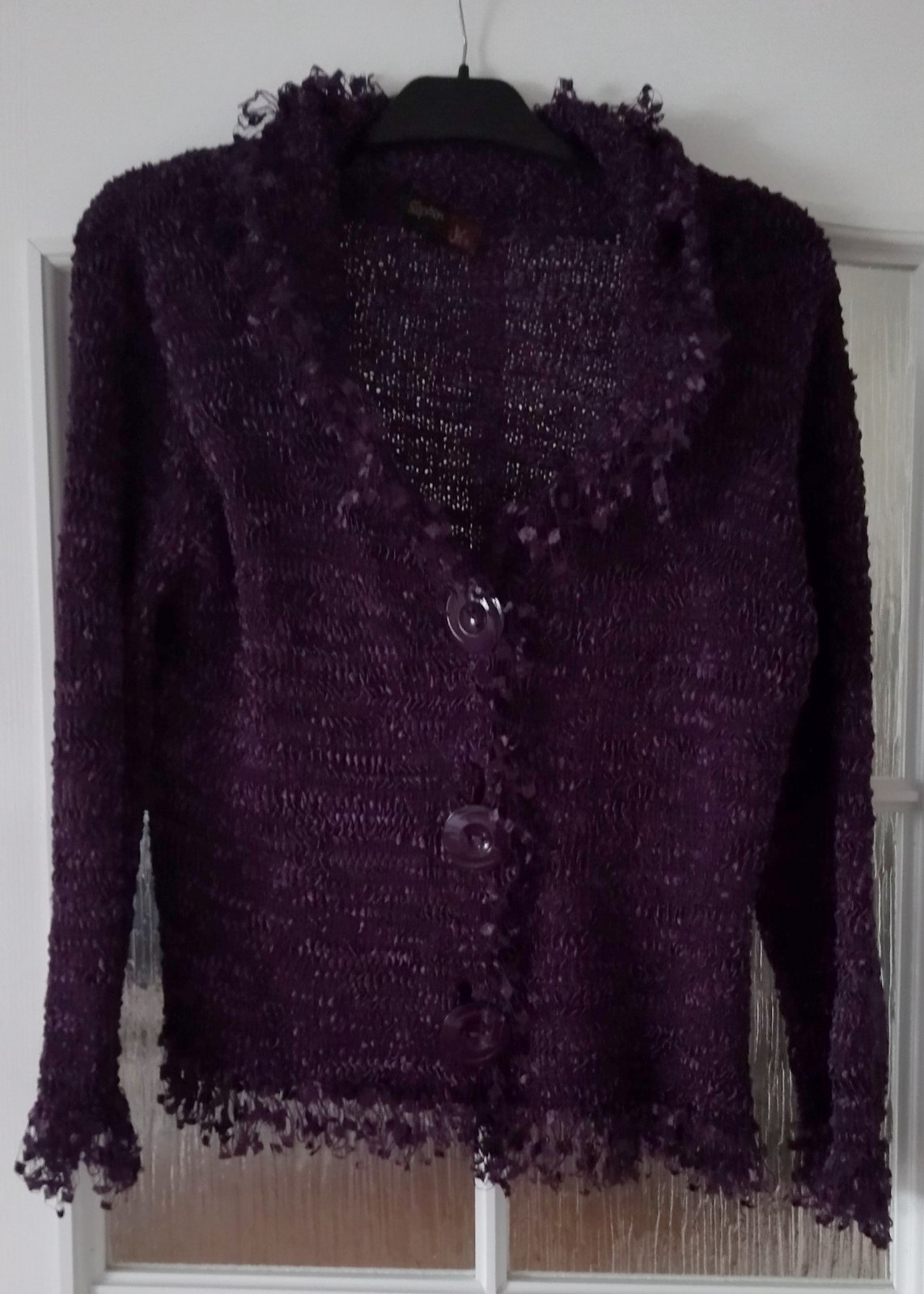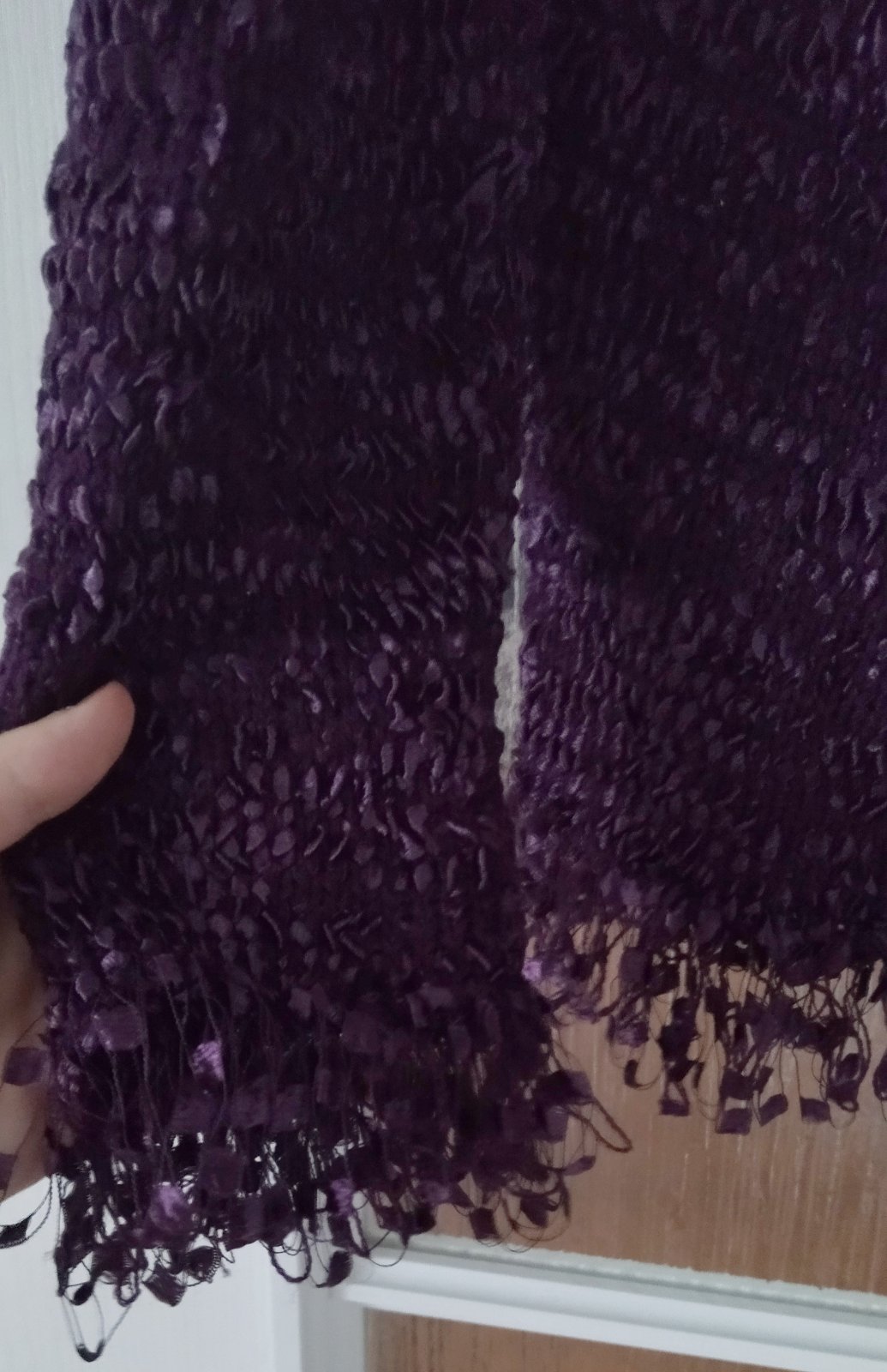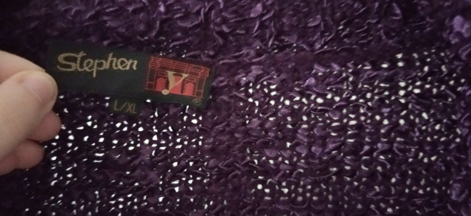 Tmavofialovy svetrik, velkost pisana L, ale podla mna kludne aj M, kusocek zmolky vpredu - posledna foto, neskusala som odstranovat, predava sa bez bielej kosielky, ta je len pre predstavu, ako sa ...