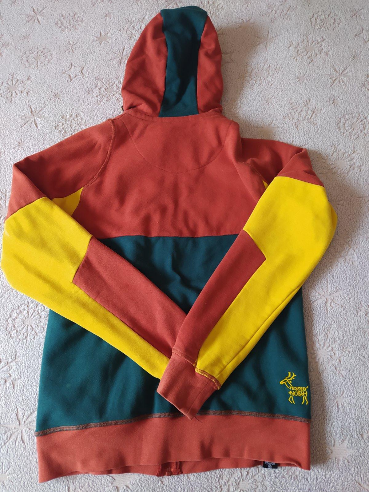 Veľ.: S je uvedené Farba: zelená Mat.: zlož. sa neuvádza Je to kvalitná tričkovina mierne elastická. Miery: š – 48/51, d – 58 cm, ruk 63 cm. Rovný strih, s kapucňou + zips + šnúrka, rukávy dlhé....