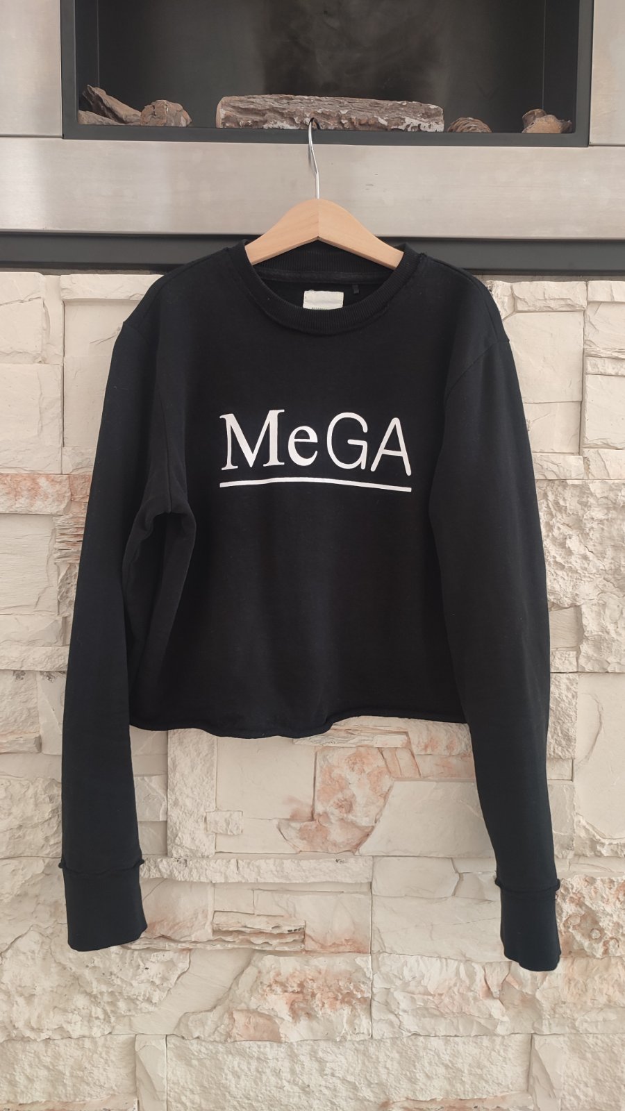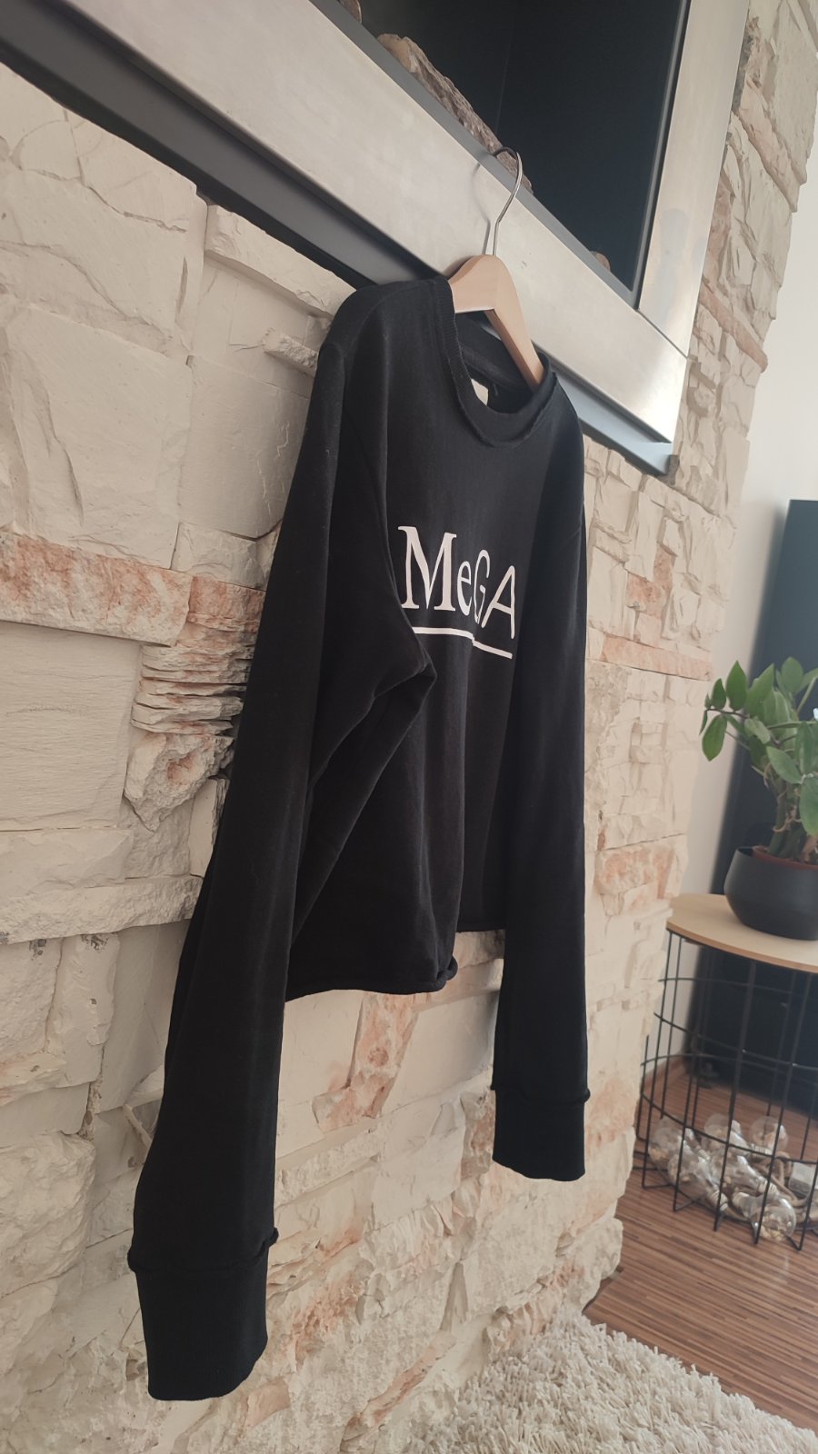 Ponúkam čierne tričko s potlačou. Skrátený strih, zaujímavé detaily.