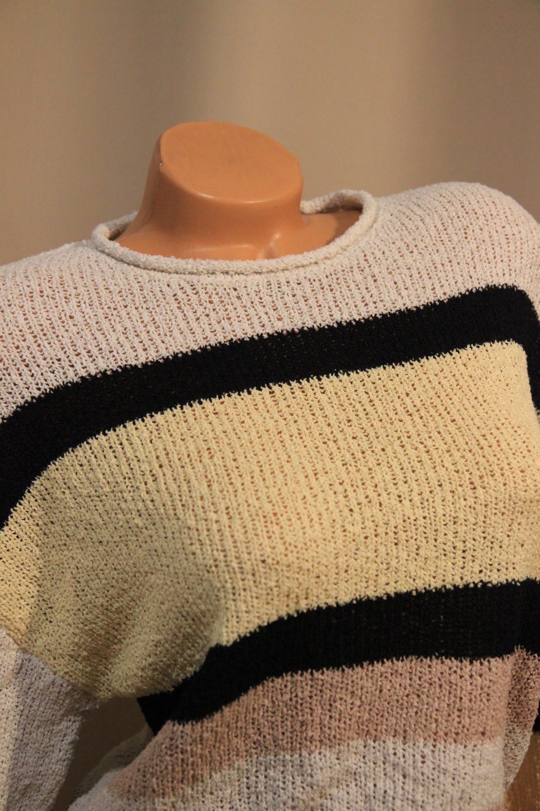 Crop pletený sveter s pásmi od H&M, veľkosť S. Širšie rukávy.