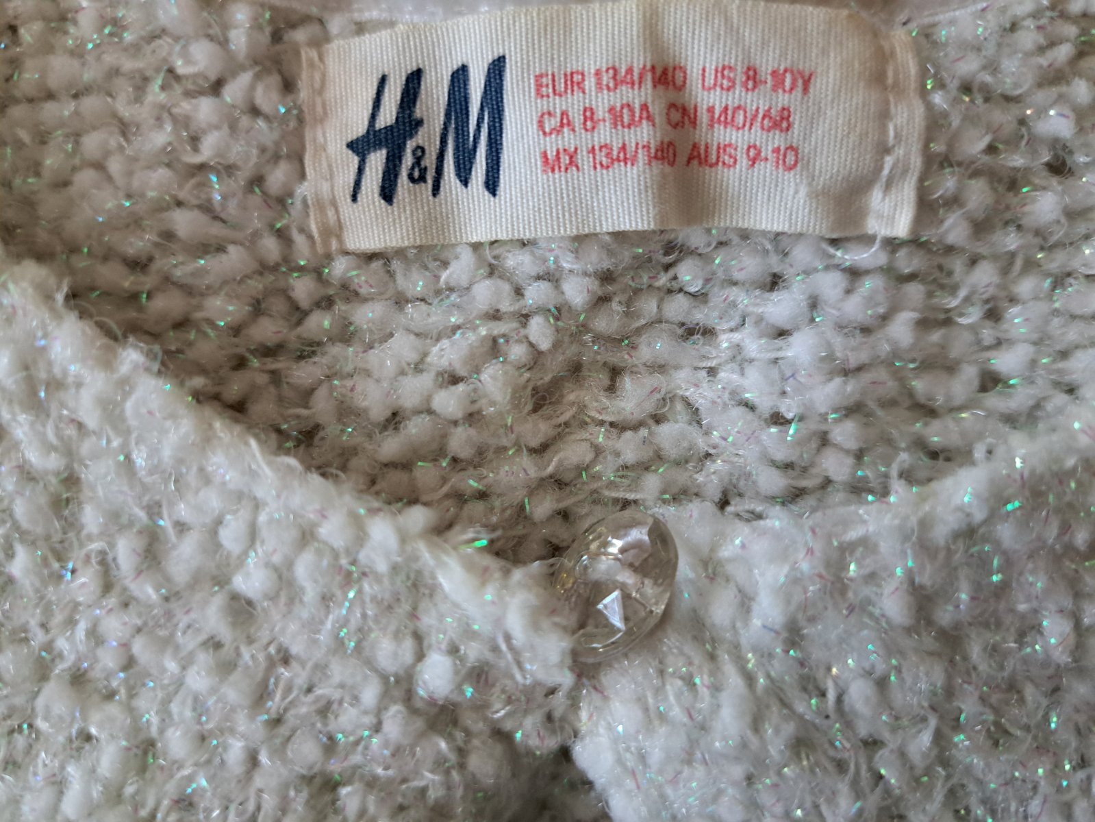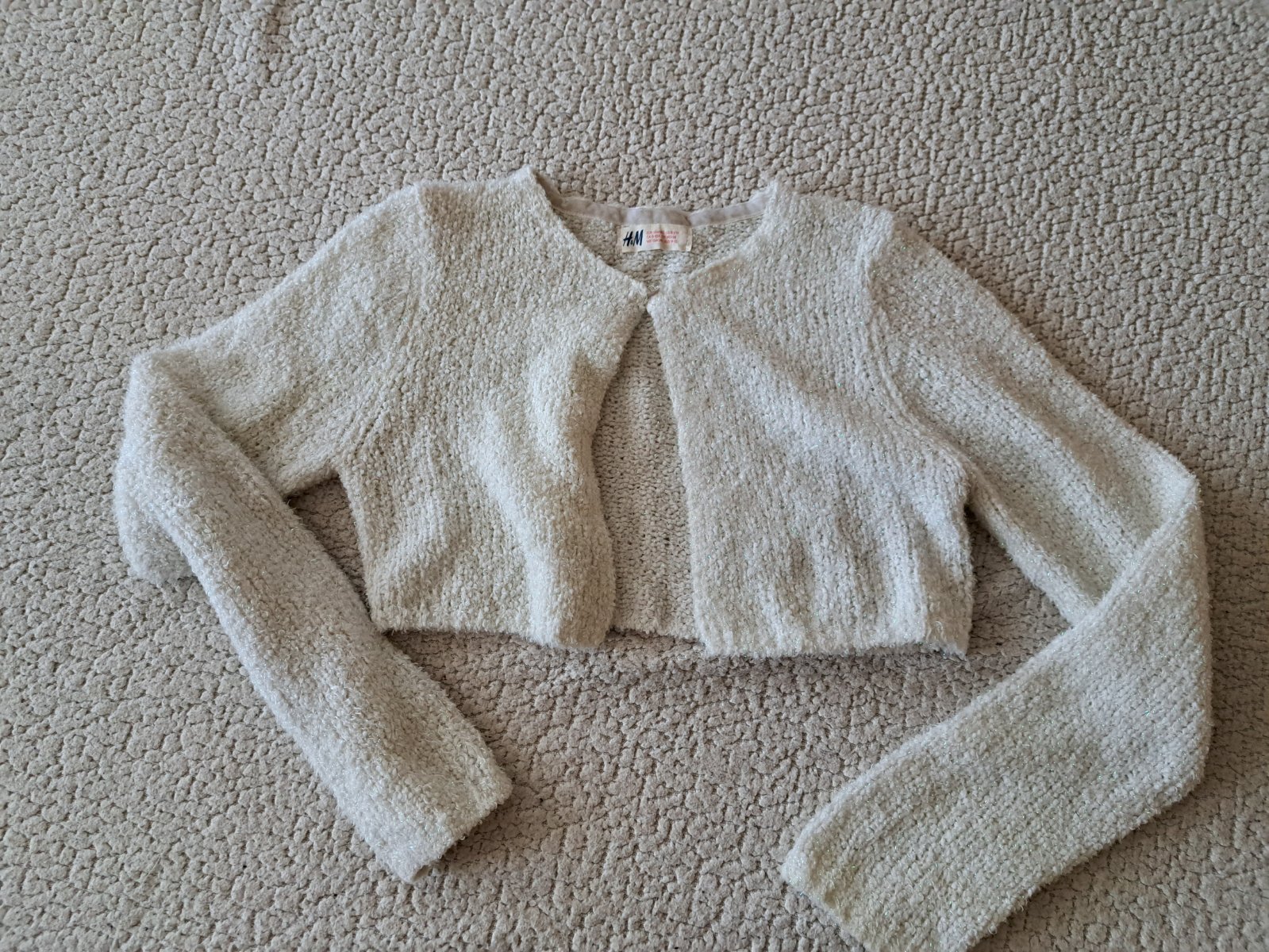 Predám málo nosené bolerko H&M 134/140 vo vynikajúcom stave. Dĺžka rukáva je 61 cm a dĺžka bolerka 33 cm. K cene si treba pripočítať poštovné.
