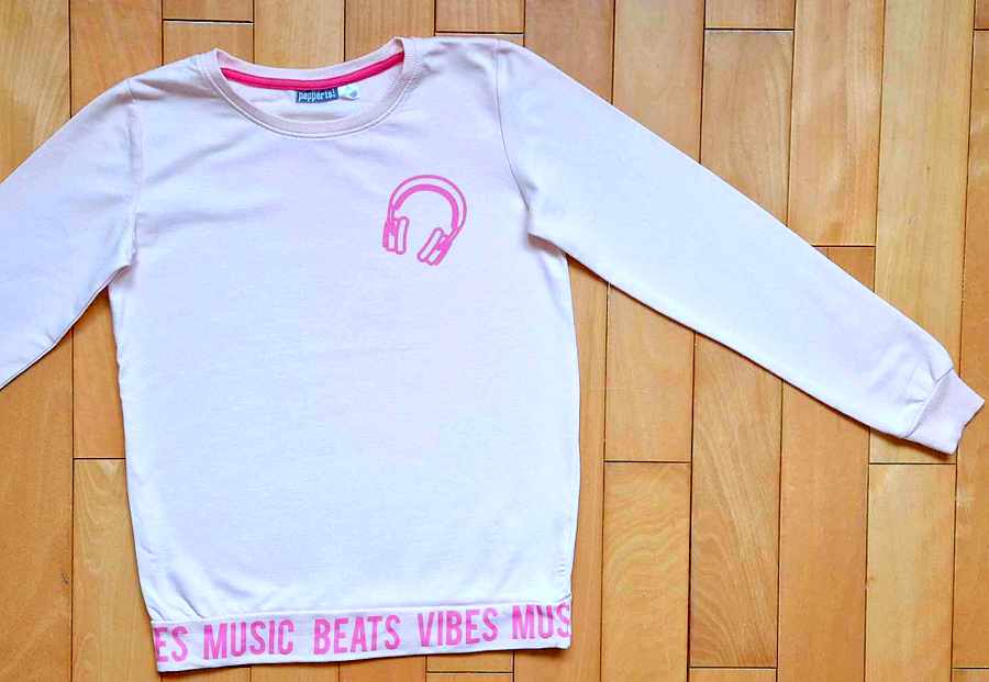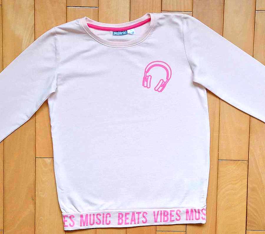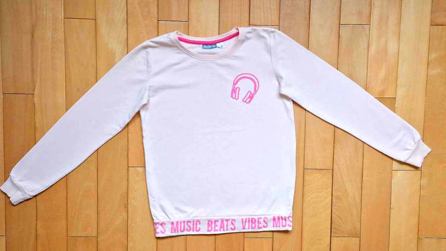 Veľkost 146/152, teda 10-12 rôčkov. Mikina slabo-ružovej farby so slúchadkami....100%stav, oblečená 1-2 krát, ako nova. Rozmery: dlžka 57-58 cm, šírka pod pazuchami 4-42 cm, dlžka rukávov od krku 62-64 cm.