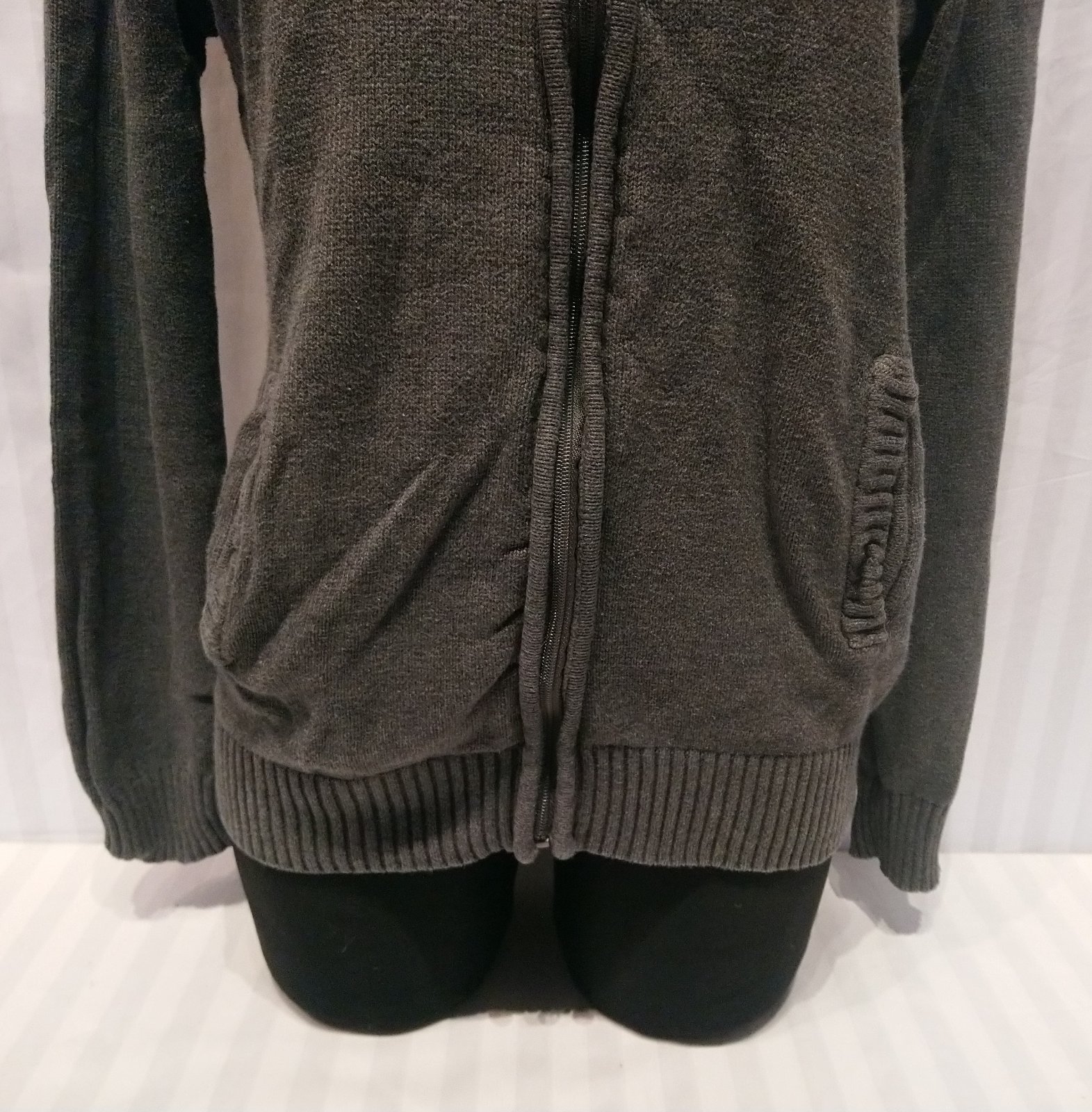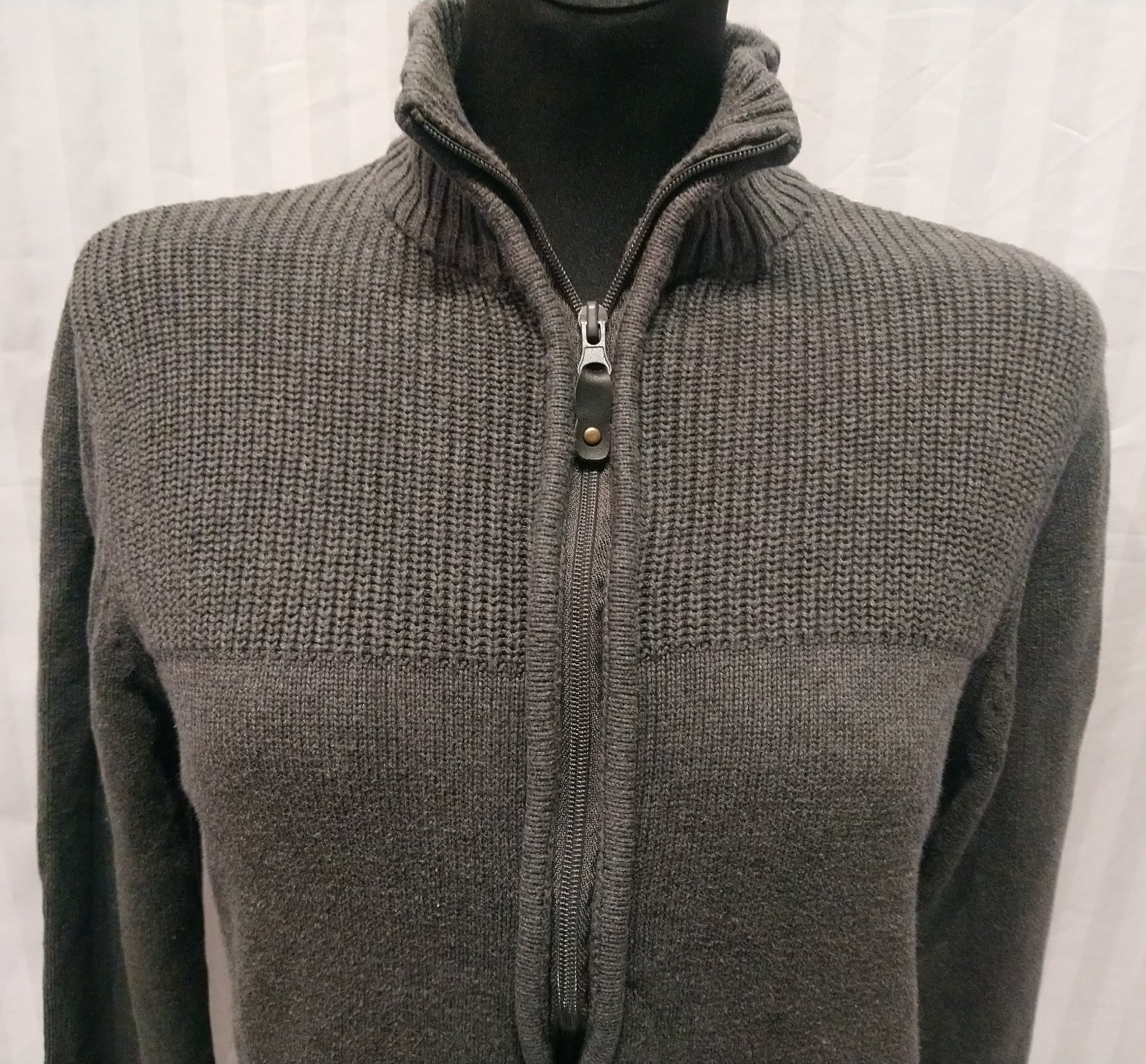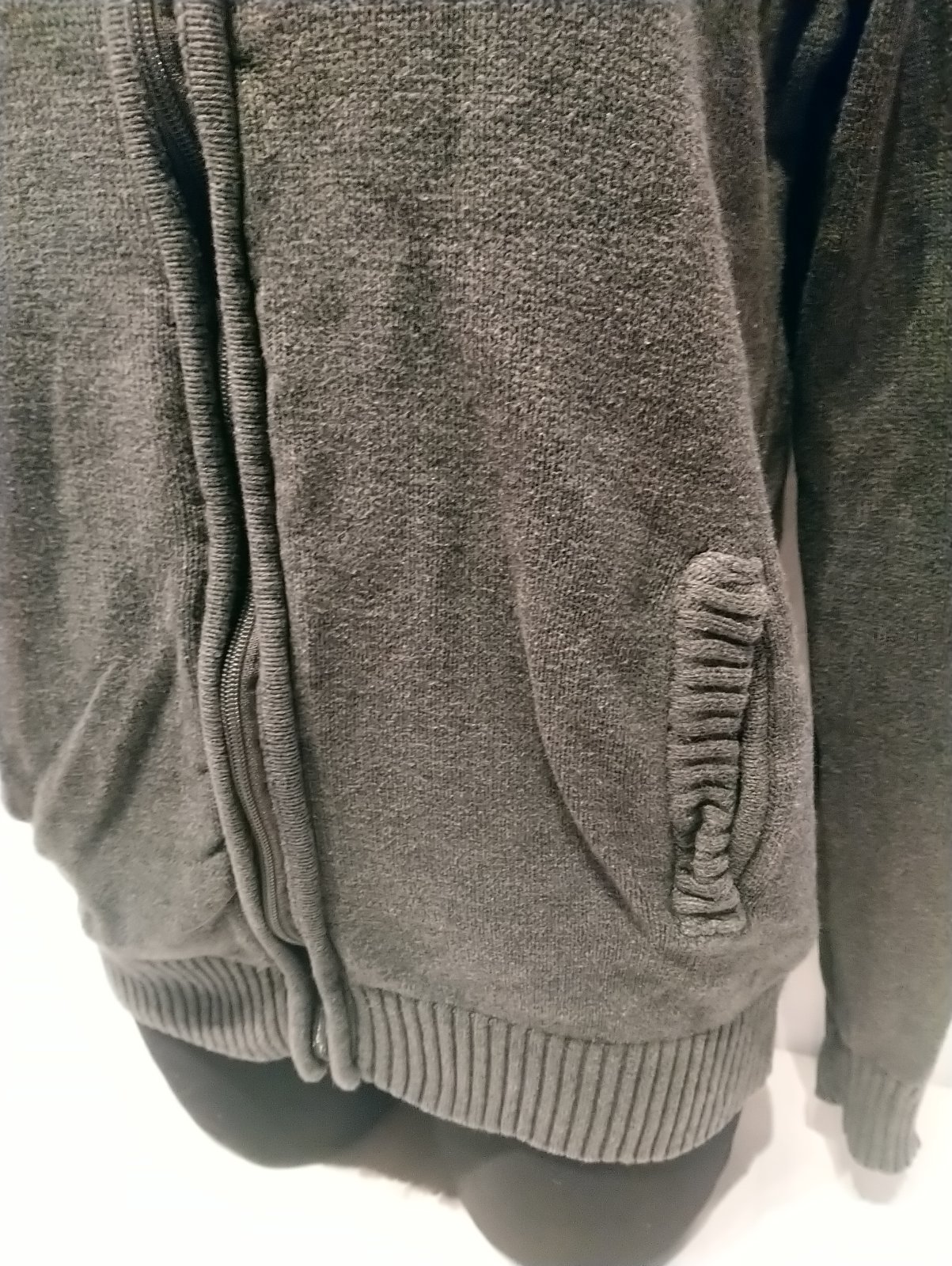 dámsky tmavo sivý sveter so zapínaním na zips, vrecká,