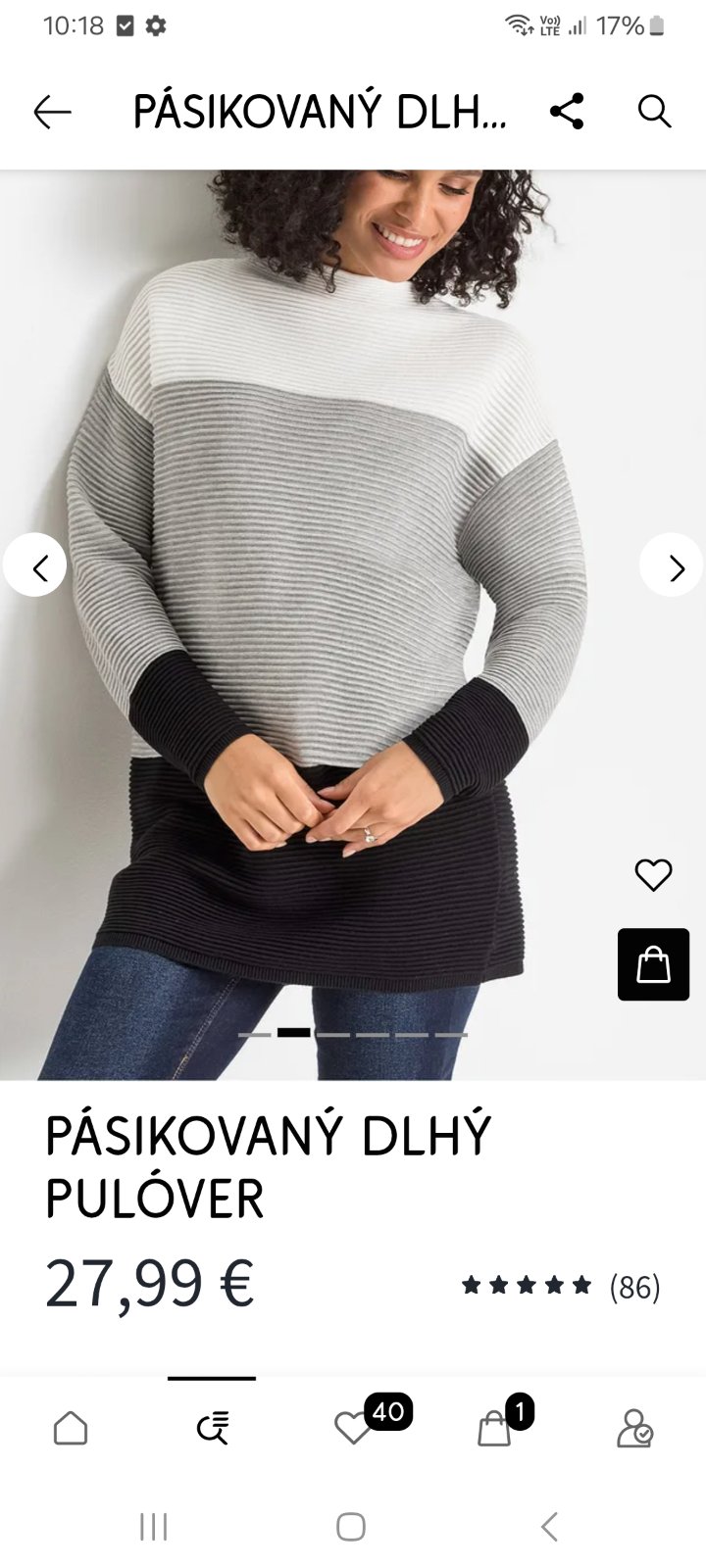 Dlhší pulóver iba raz použitý,, označený je veľkosťou 40/42 ale riaďte sa rozmermi: prsia 60cmx2, dĺžka 85cm