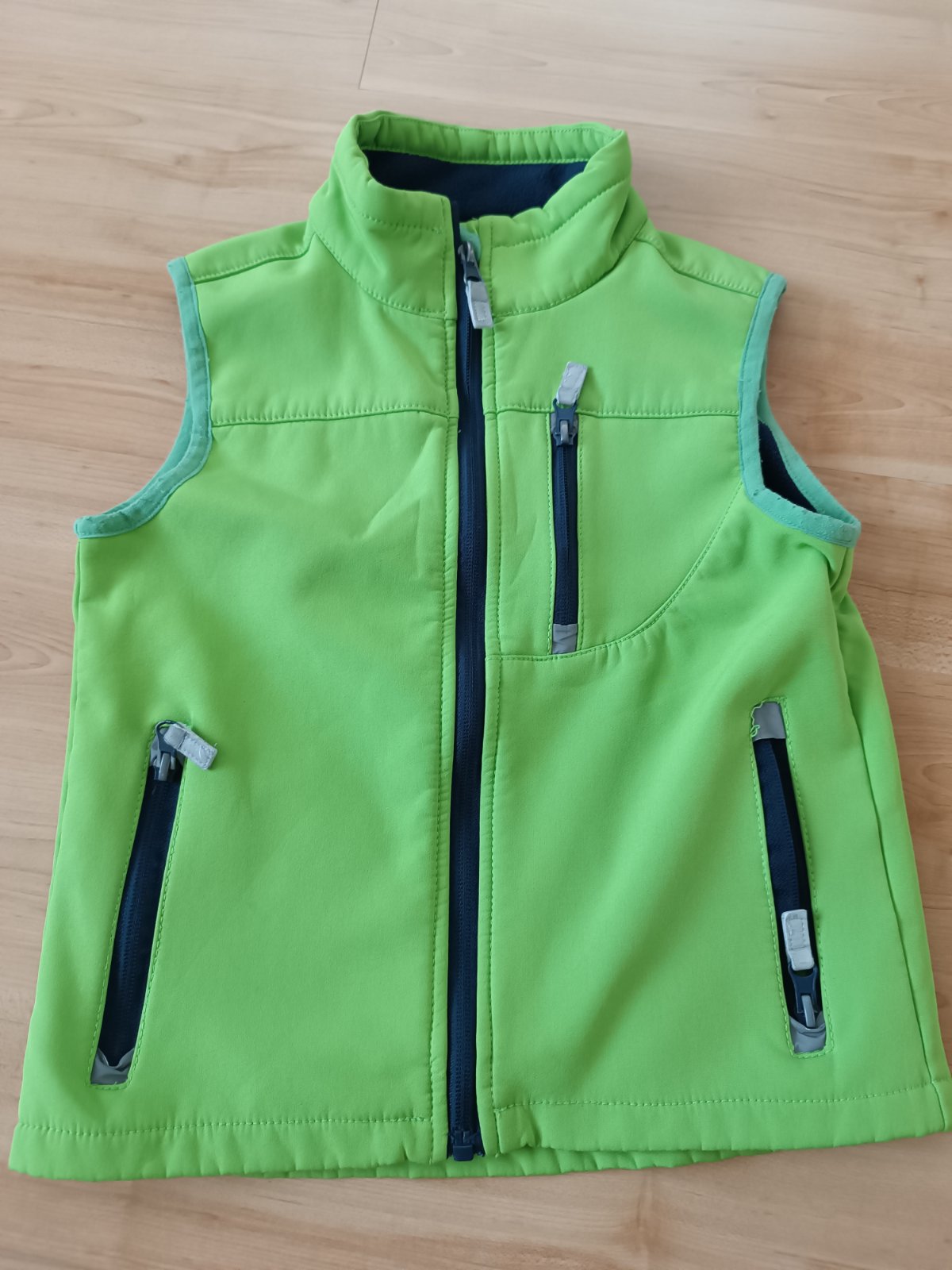 Softshelová vesta. Bez poškodení. Na leme okolo rukávov žmolky.