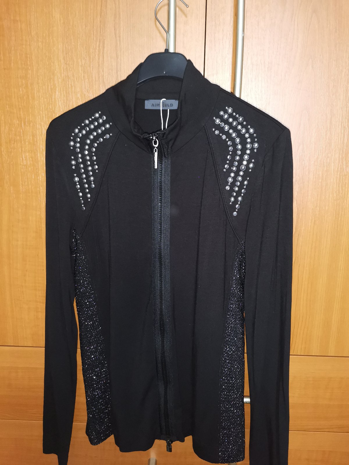Tričkova mikina zips, čierna, vyšívané perlami, jemný mäkký materiál trochu elastický, nenosené. vhodné pre krasokorčuliarky.